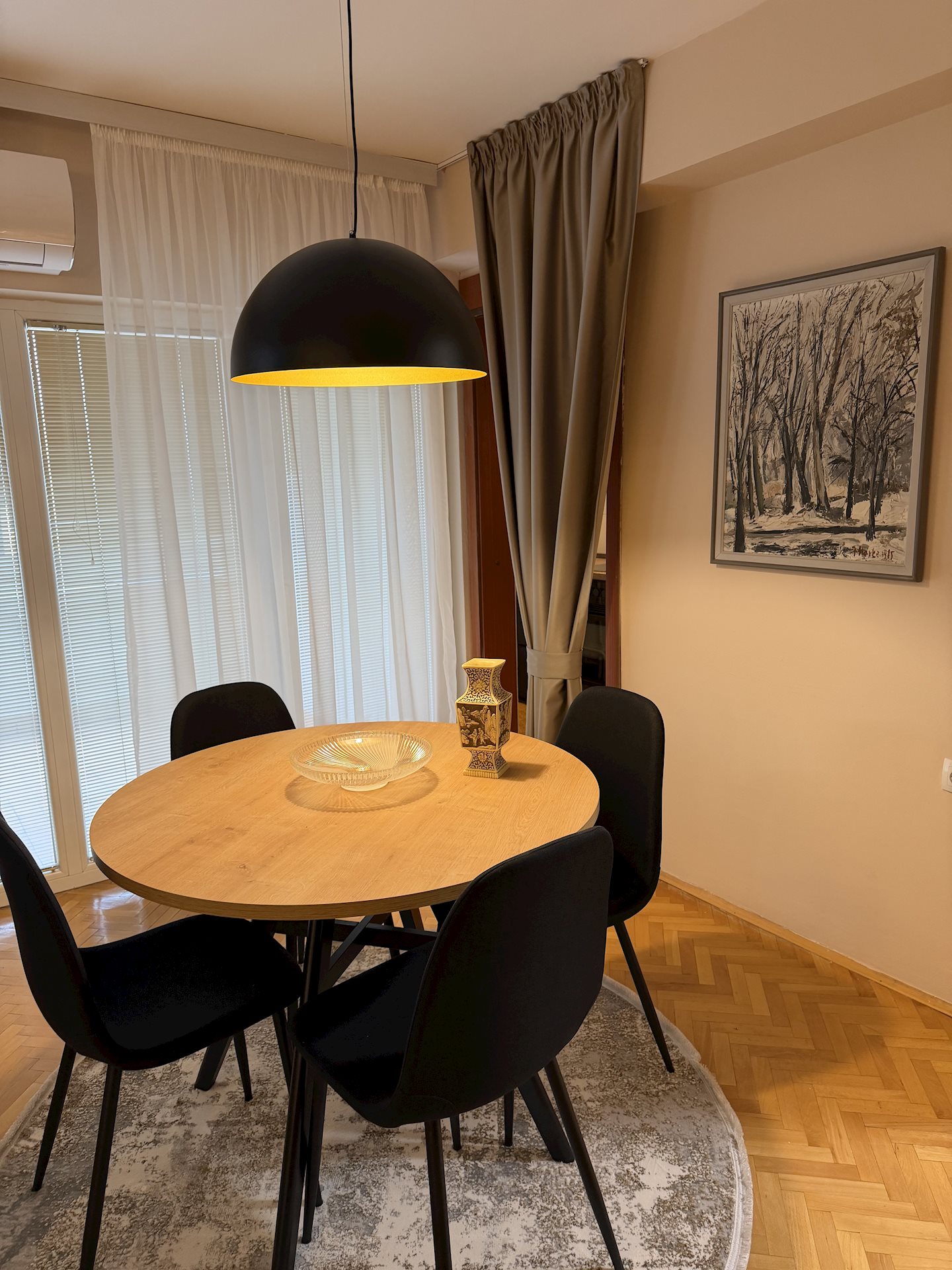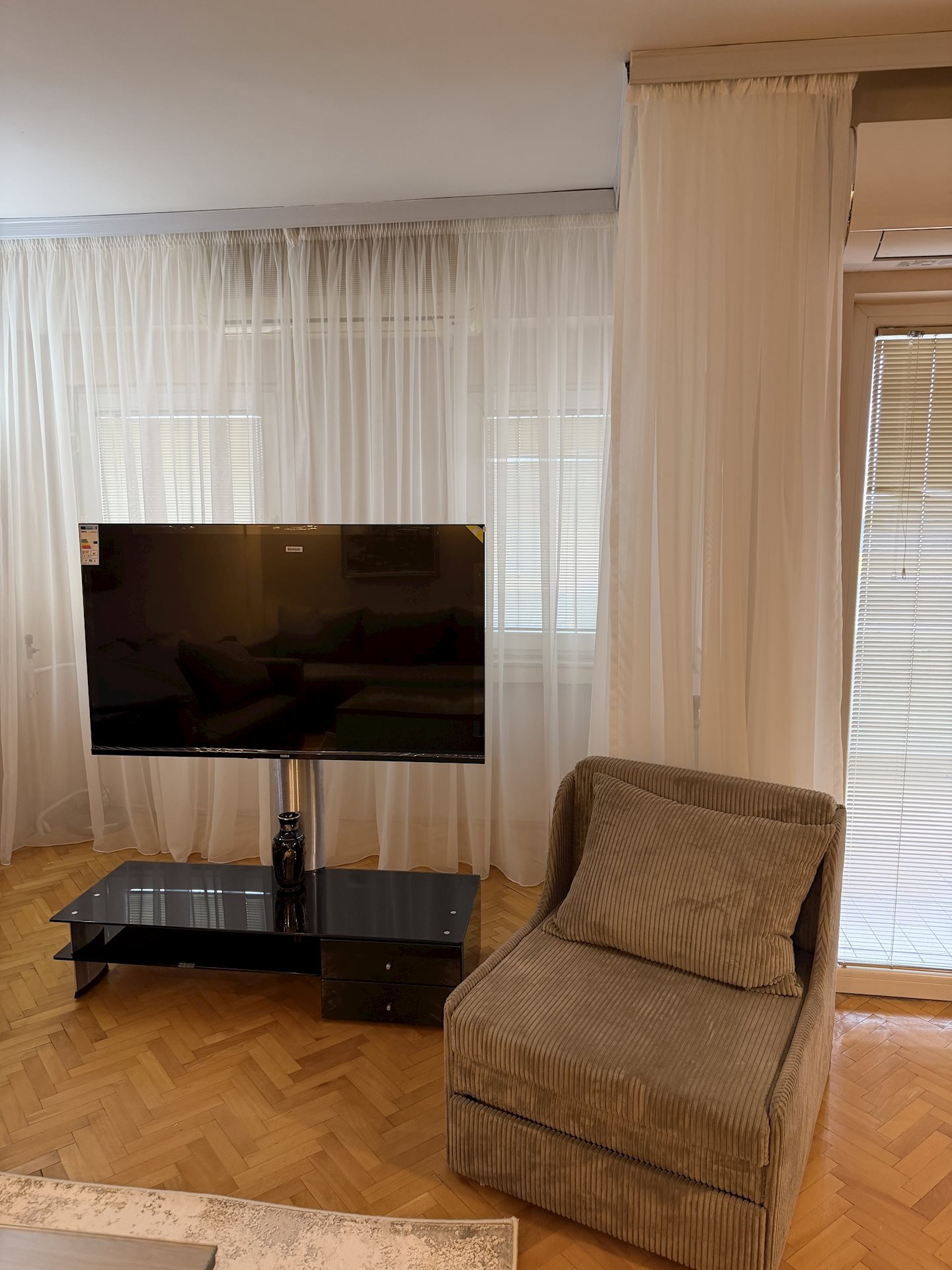 Fully furnished apartment for rent, with area of 60m2, in center area, near dragstor Betty and the Dutch Embassy. The apartment is located on the 5th floor/5 floors, in a building with an elevator. It consists of a living room, kitchen, separate bedroom, storage room, balcony and one bathroom. Heating is electric, with air conditioning inverters.