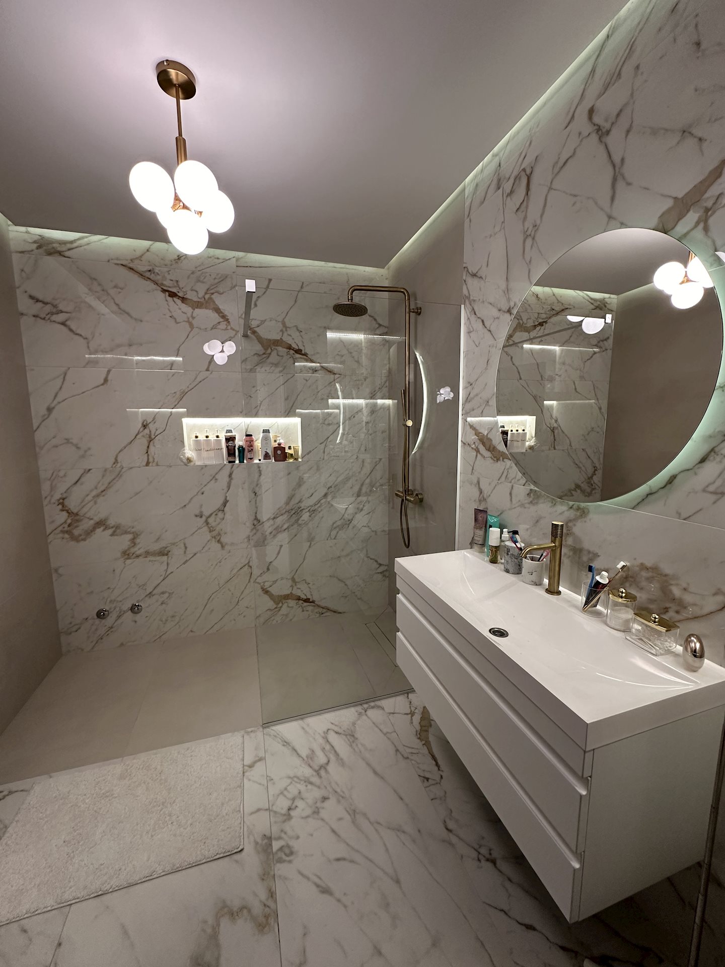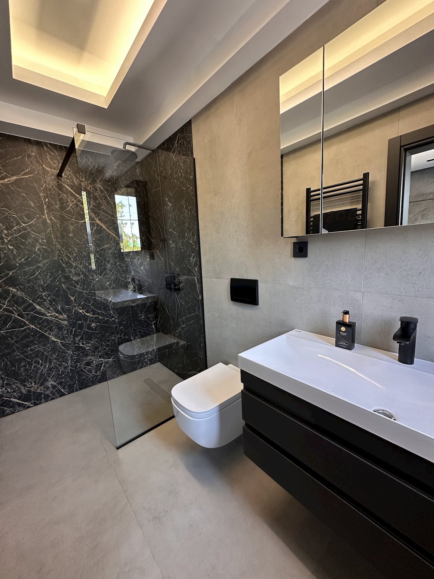 *Heating and cooling with Toshiba heat pumps (water-air), underfloor heating throughout the house + fan-coolers.