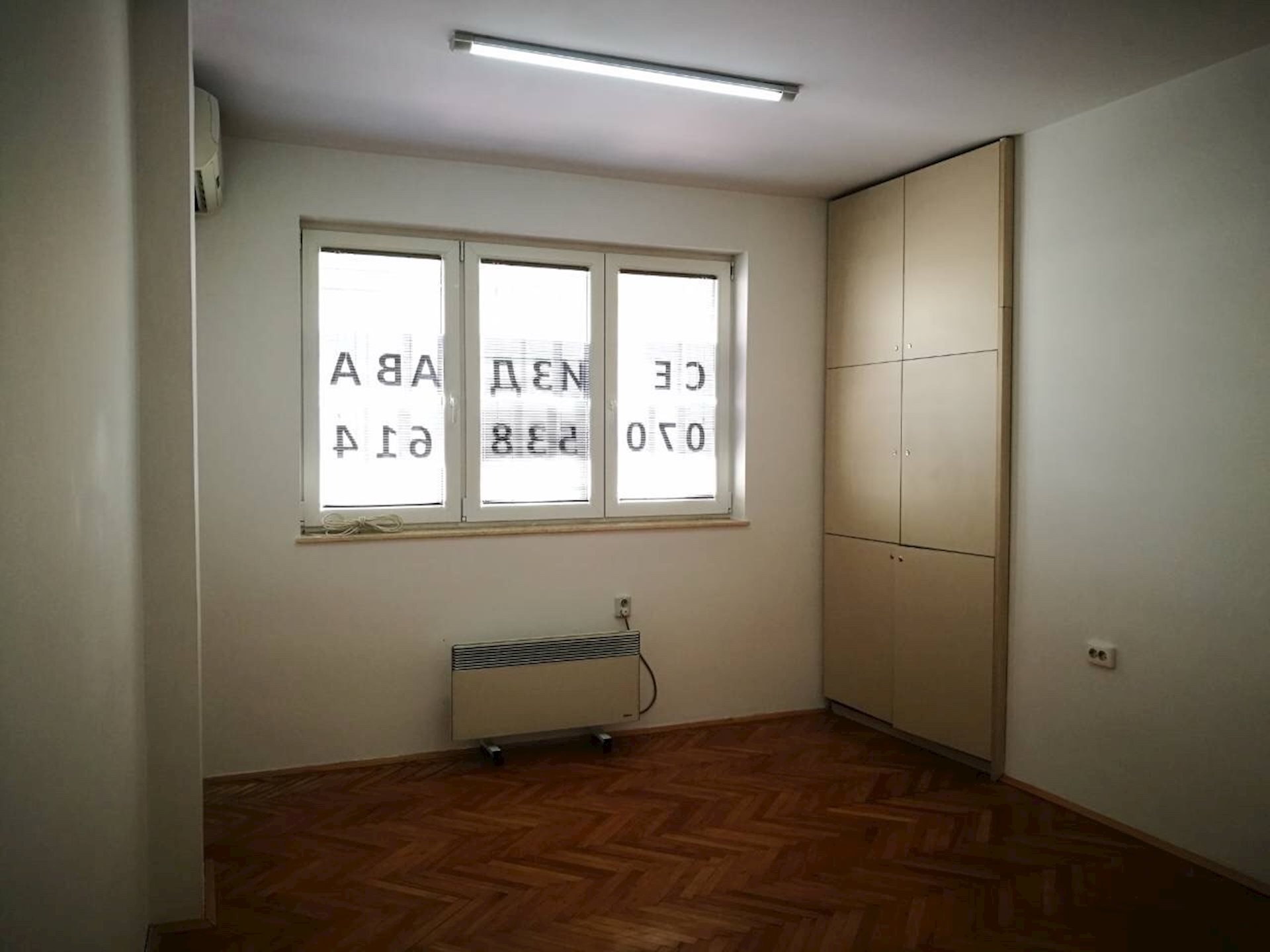 Деловен простор во центар, 108m2, шест простории, клима во секоја просторија, две купатила, балкон и тераса, едно паркинг место, со поглед на три страни. Лоциран на прв спрат во строгиот Центар над канцеларијата на претседателот во центар.
