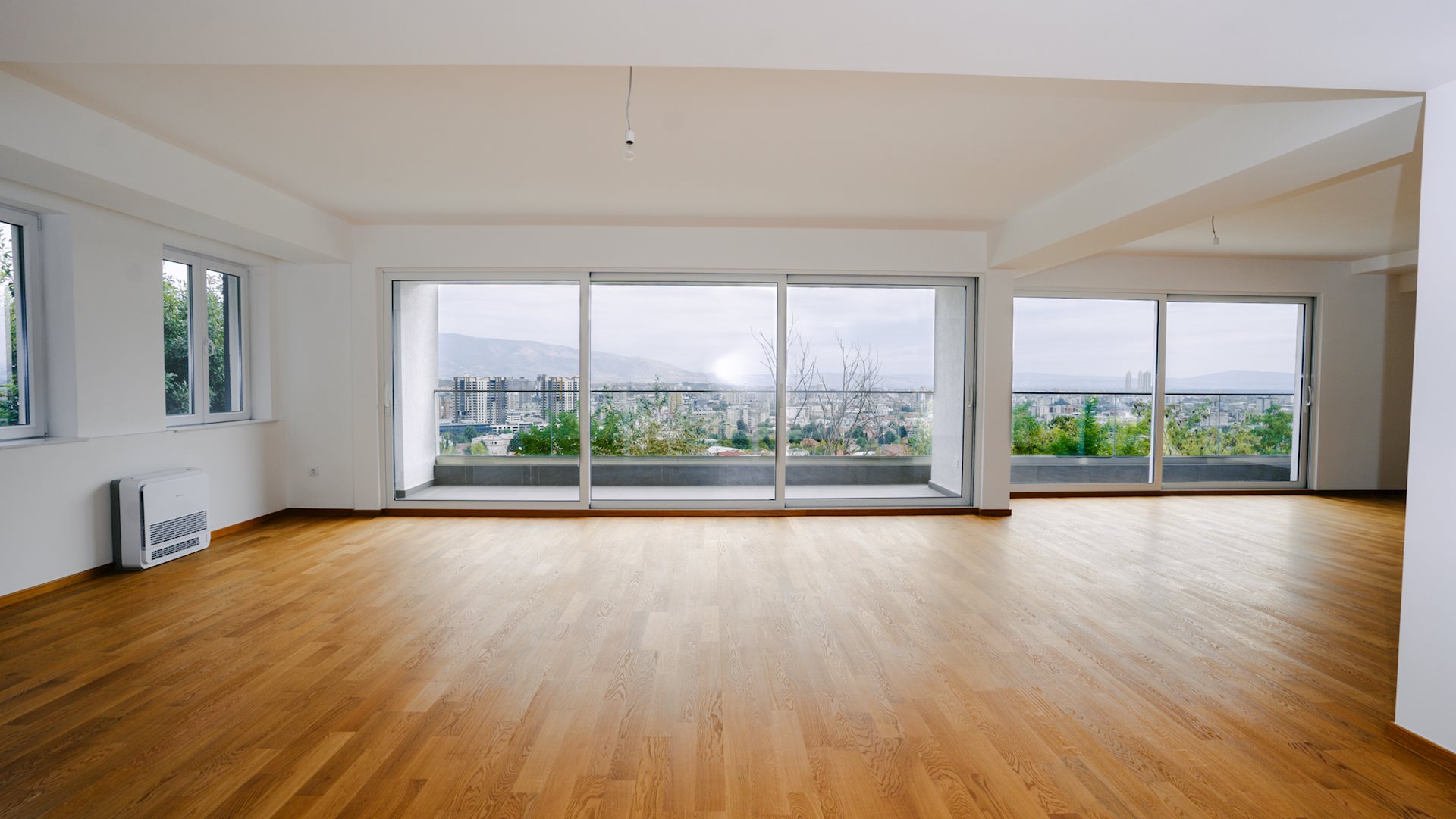 Висококвалитетен нов невселуван стан на Водно кој представува можност за луксузно уживање во модерен животен простор со прекрасен поглед на градот и одлична организација и функционалност на просторот.