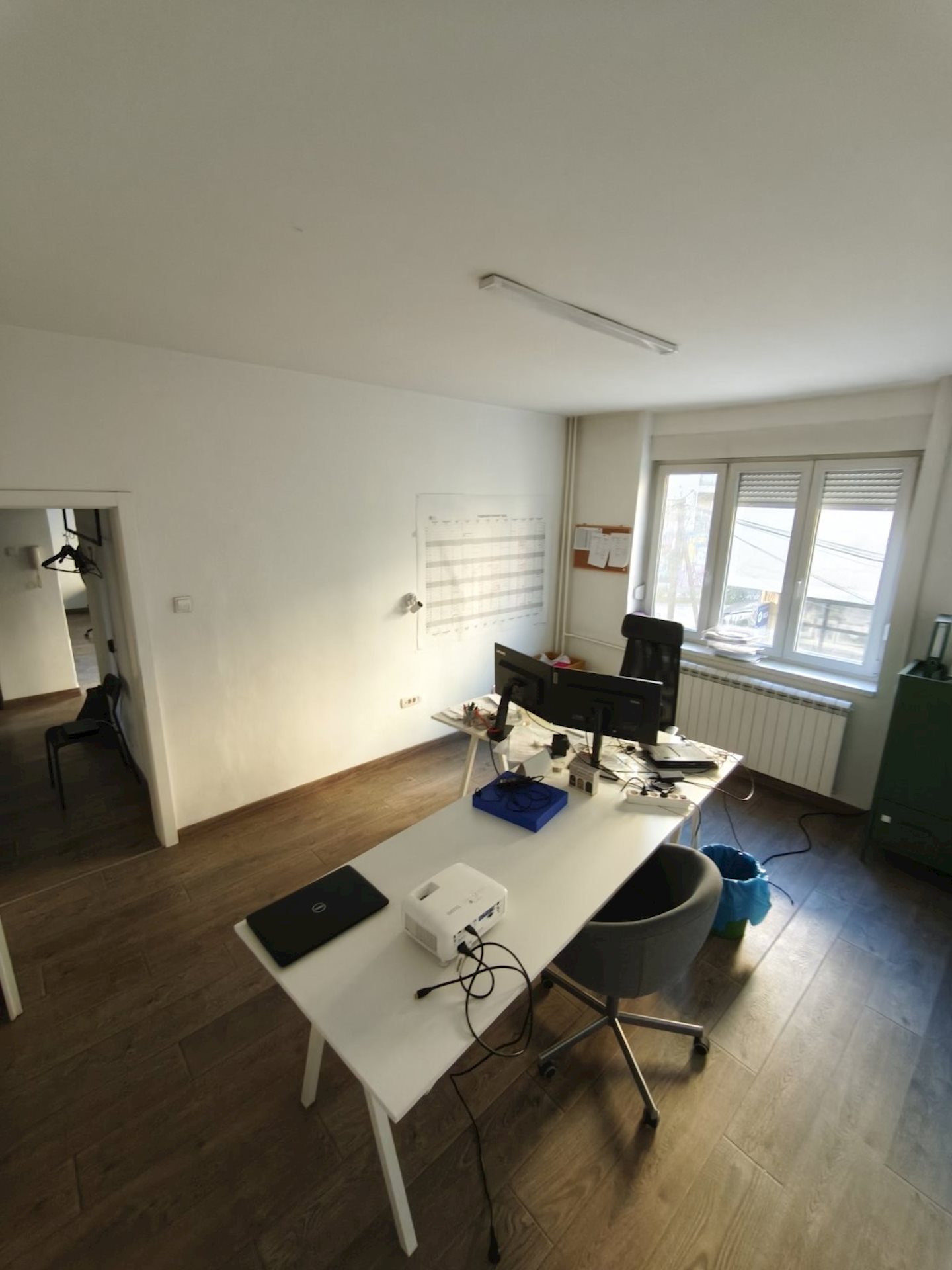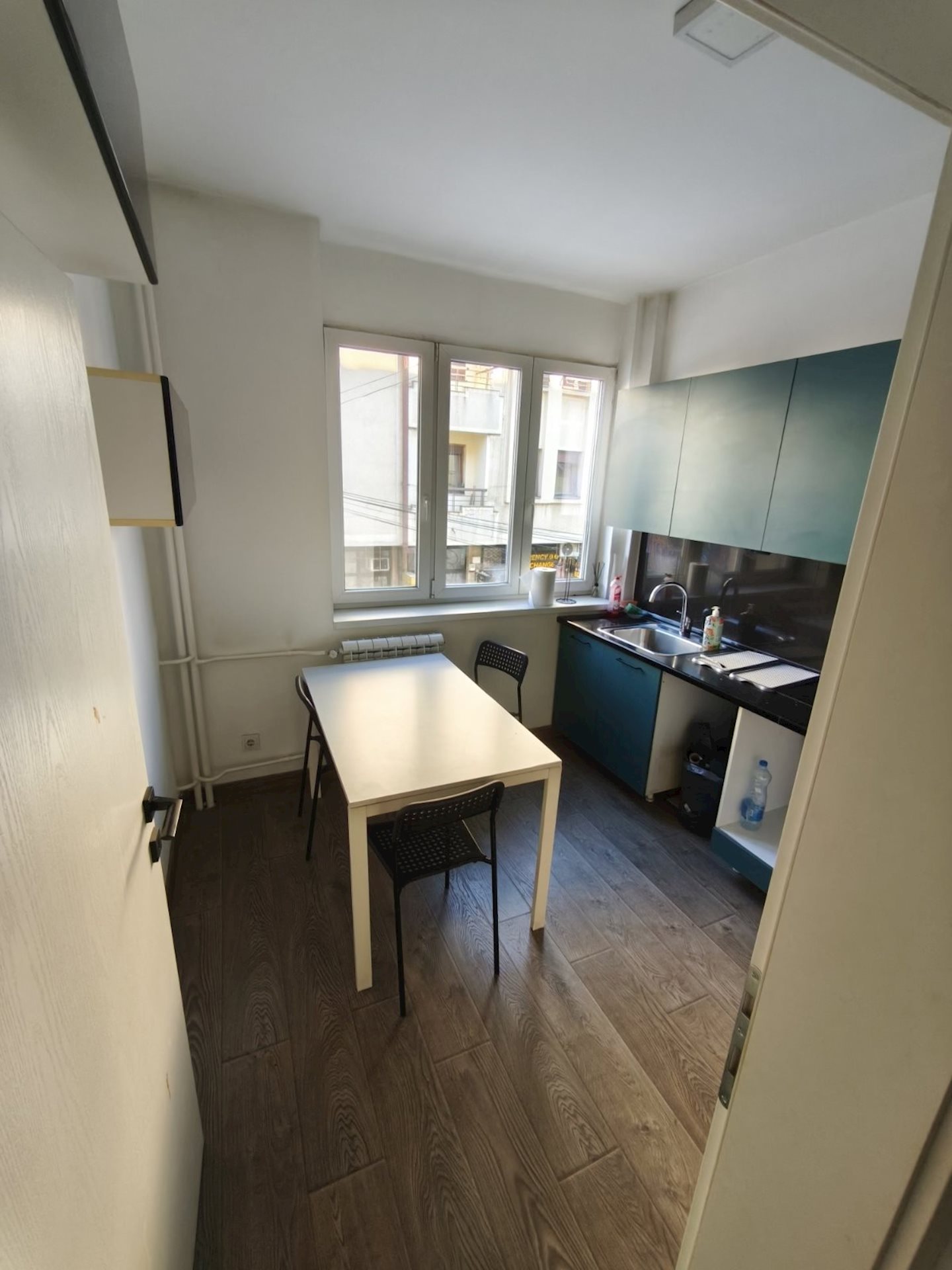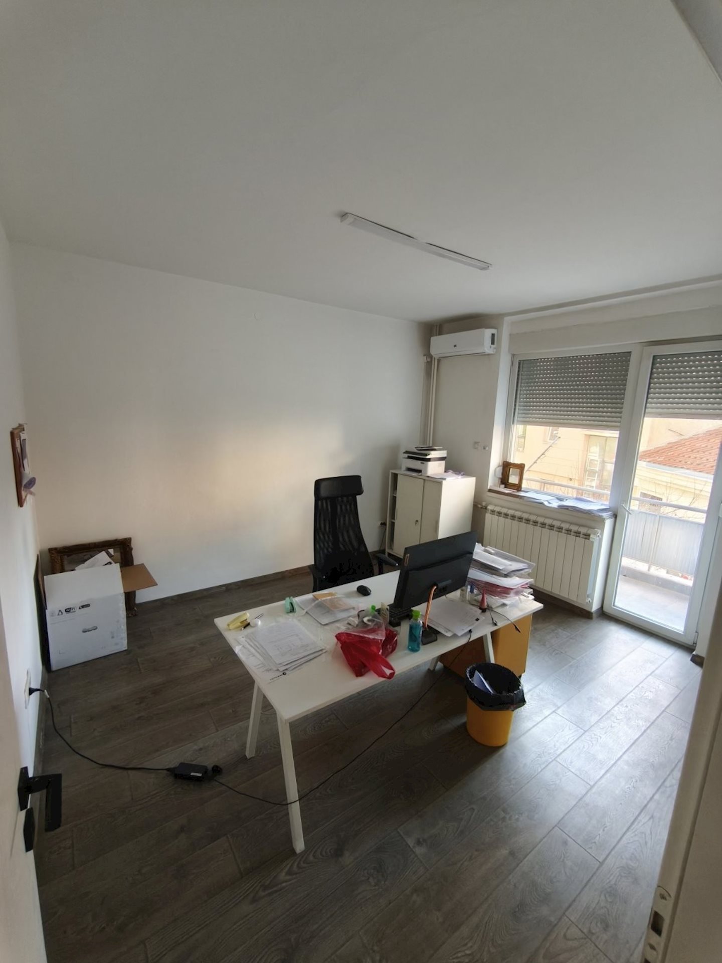 Се изнајмува празен стан од 80м2 со вградена кујна кој одговара за канцелариско работење,салон,козметичко студио и сл.