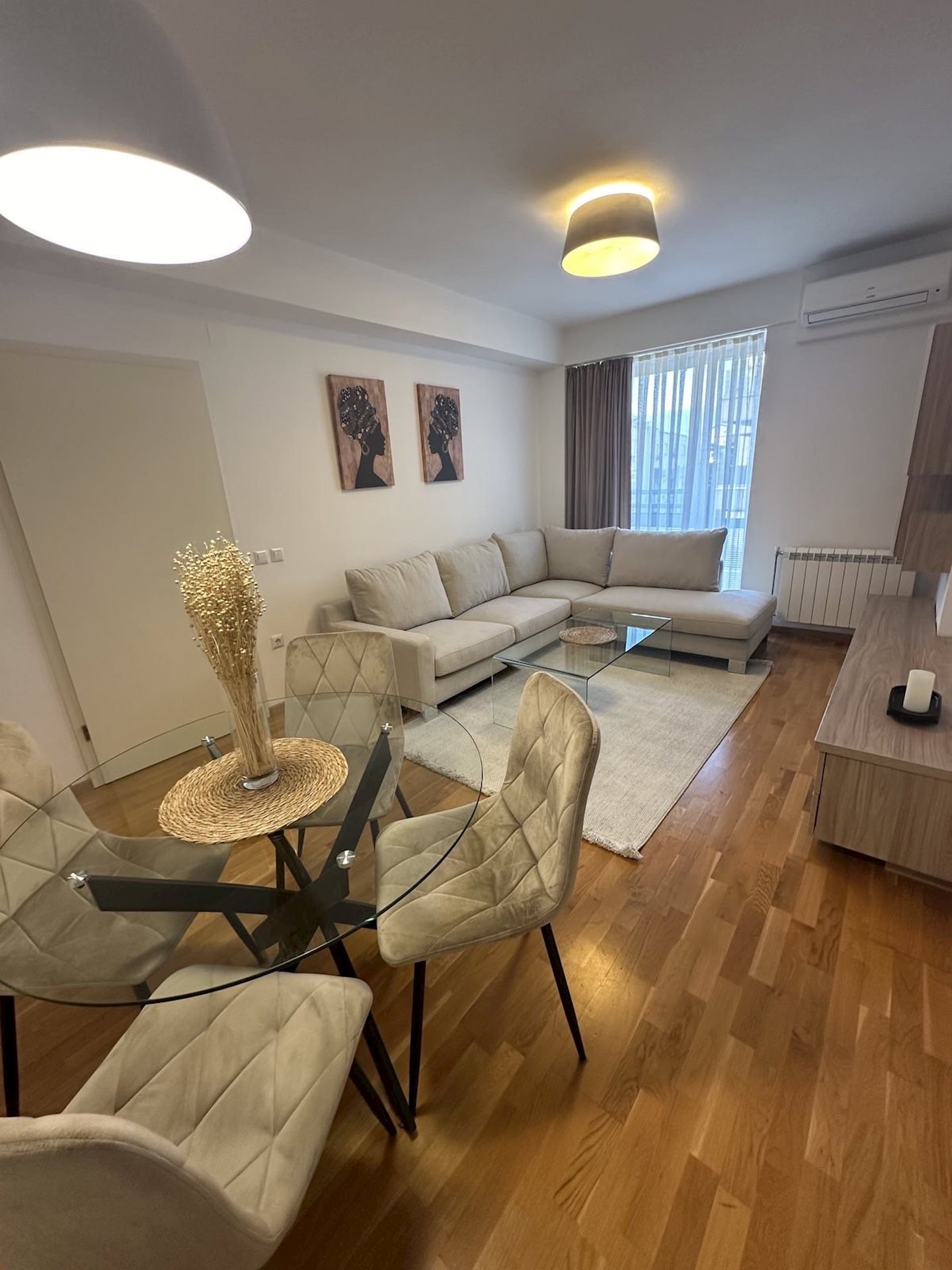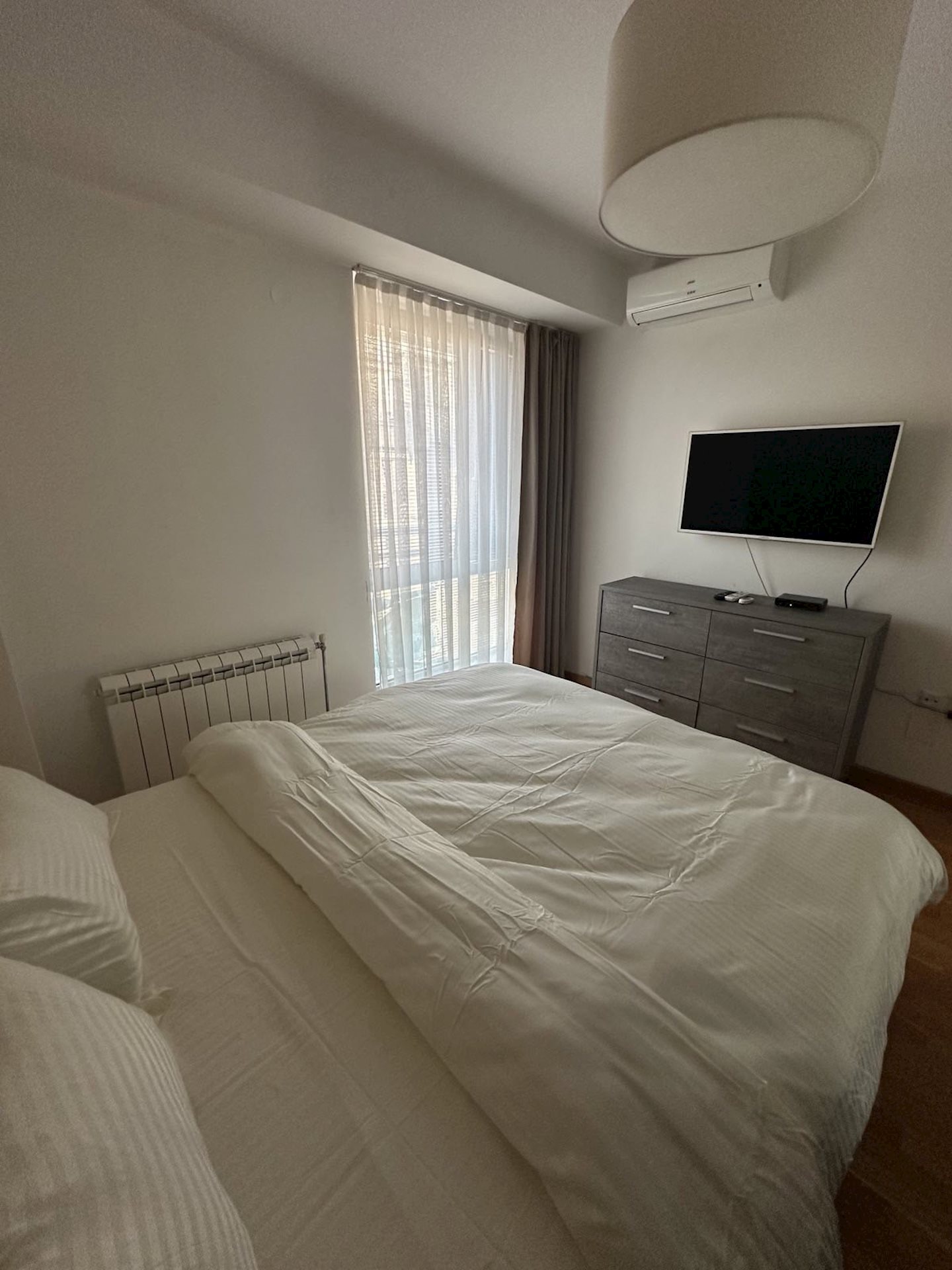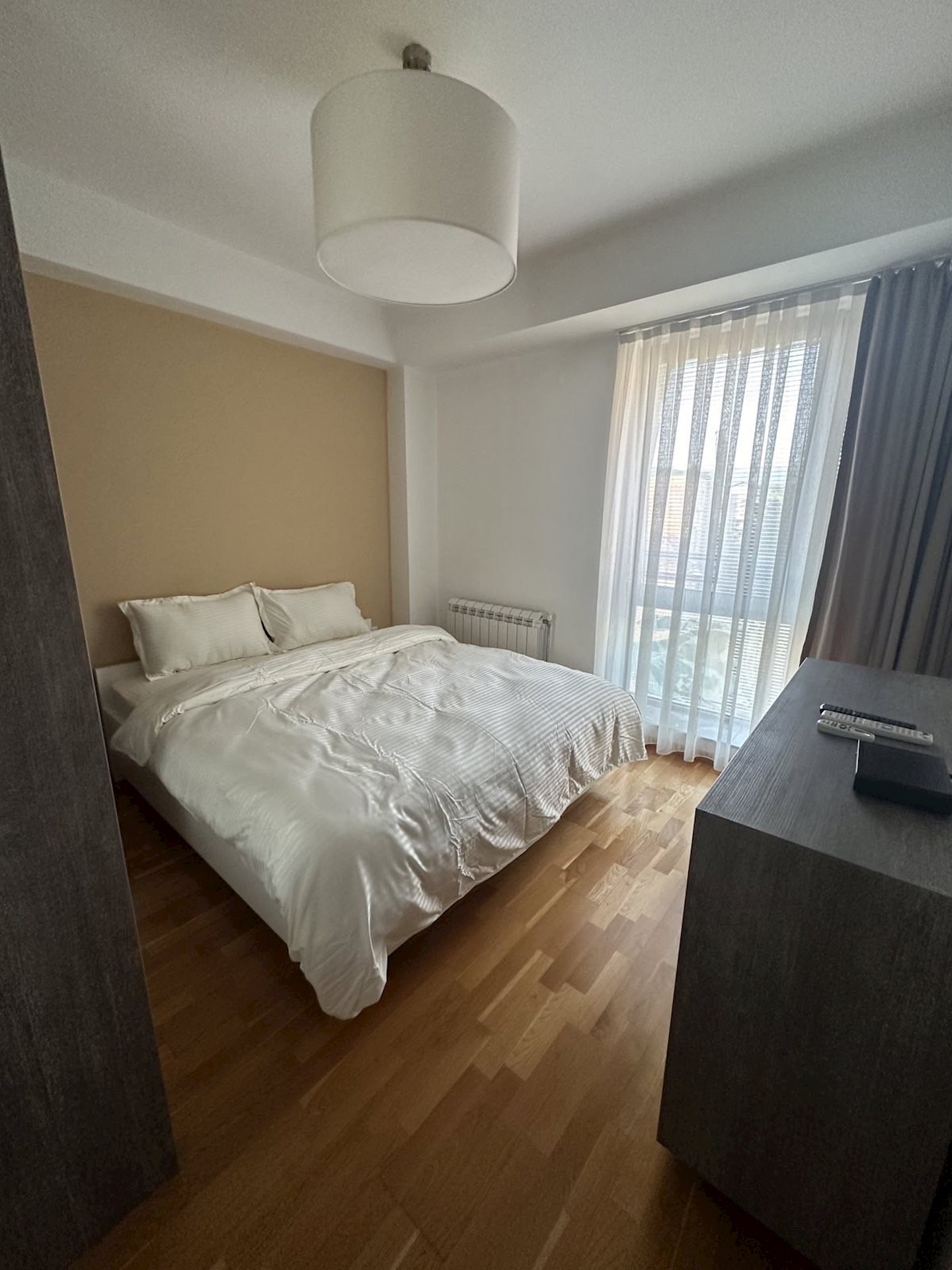 A comfortable and well-maintained 60m² apartment is available for rent, on the 5th floor of a building with an elevator.