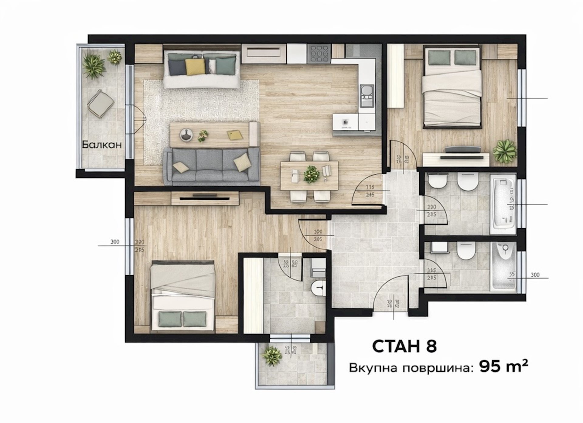 • Пространи станови од 95 м² – за поголеми семејства и повисок комфор