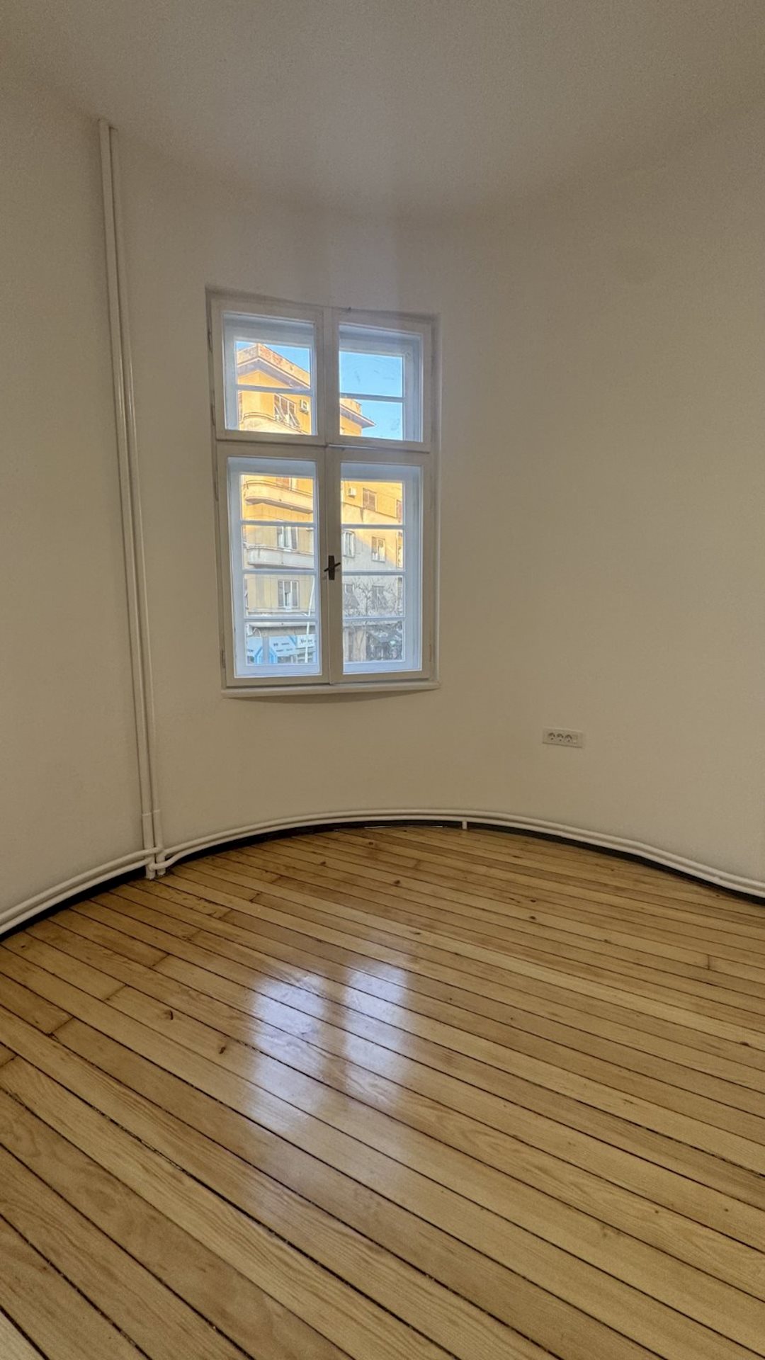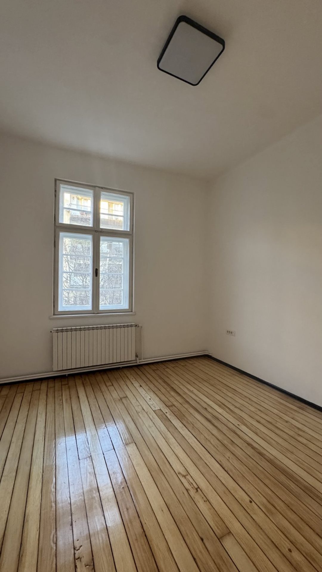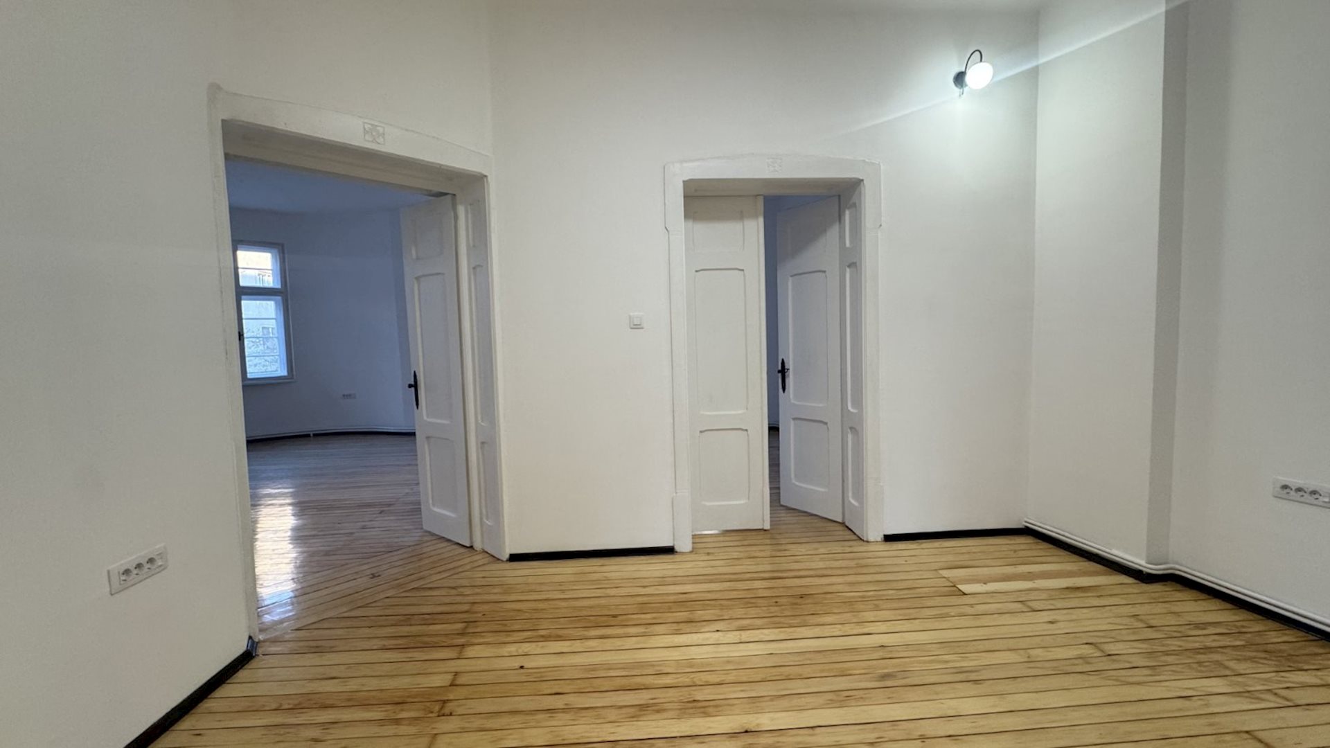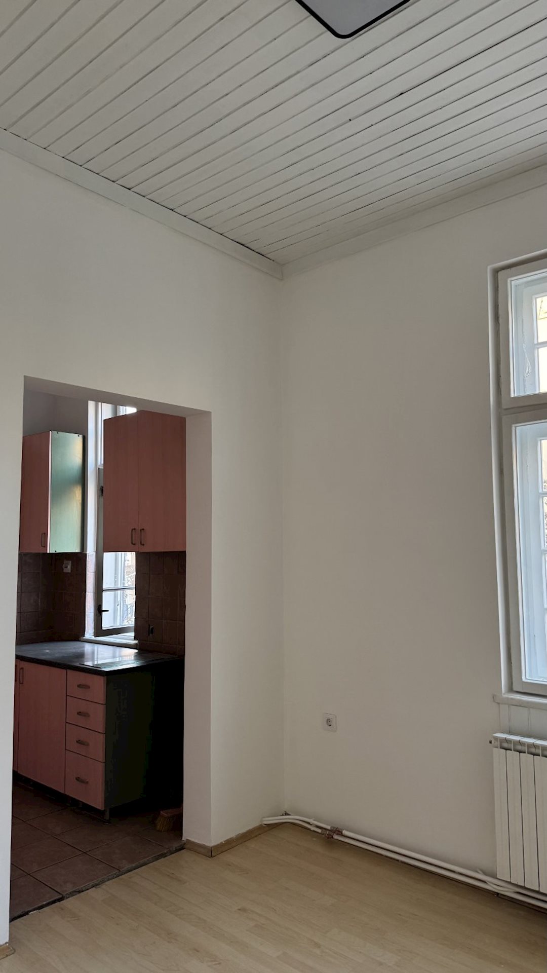 Excellent apartment for rent, with an area of 100m2, suitable for office work or living, in Debar maalo, on the roundabout, near Hempro. The apartment is on the 1st floor, in a building under protection of cultural and historical heritage, with high ceilings of 3.3 meters and central city heating. It consists of four rooms, a kitchen, a bathroom and a terrace. The electrical and plumbing installations have been completely replaced, the windows and doors have been restored and the original hardwood floor has been retained. Network cables have been installed in all rooms, as well as a new lighting. Two parking spaces for residents, with a POC agreement are provided, with the rent of the apartment.