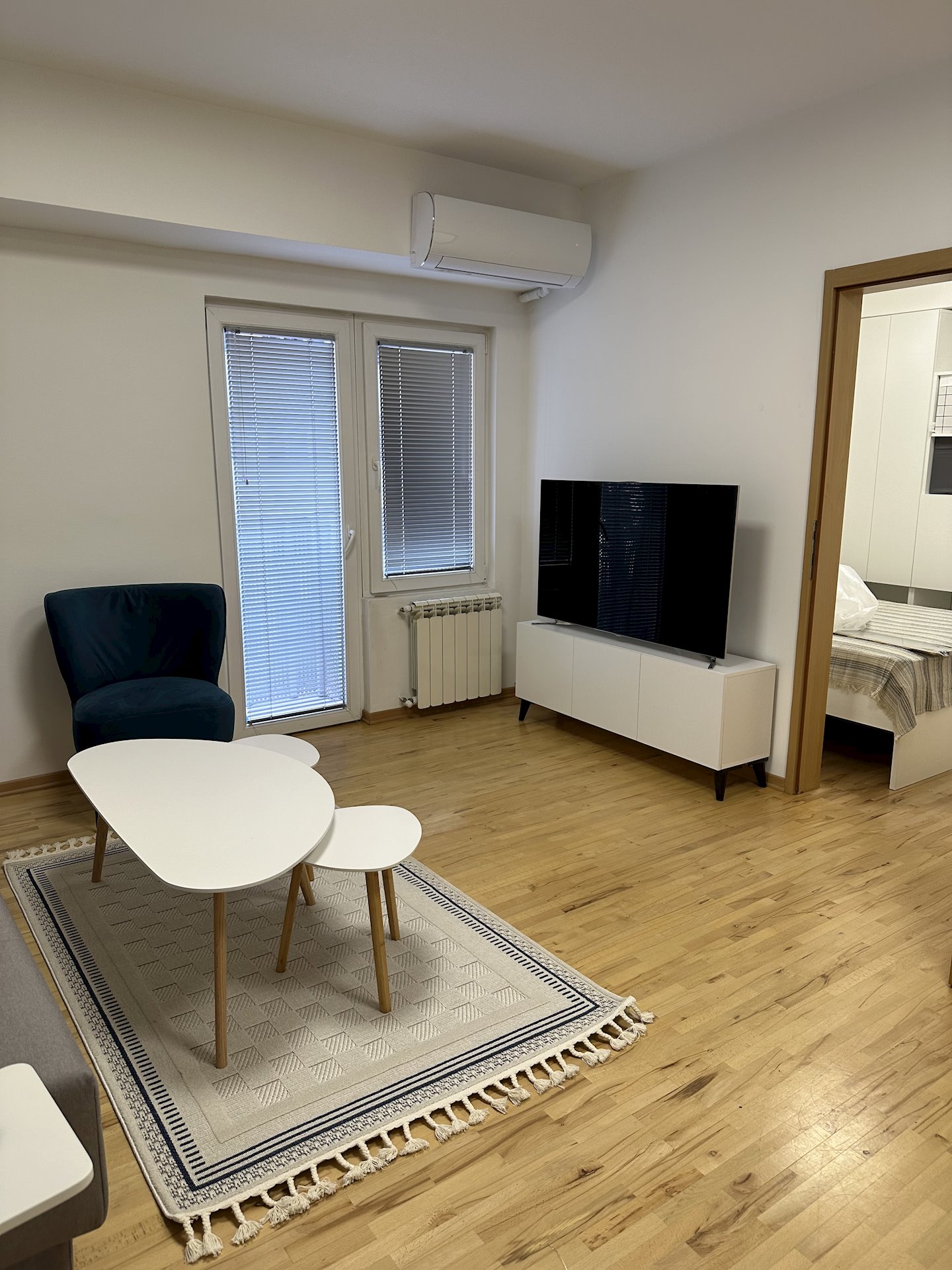 Two new separate apartments for rent, next to each other, on the 2nd floor, in a mini building, near the big Orthodox church in Debar maalo neighborhood. The apartments are rented fully equipped with furniture and appliances, with new kitchens, for residential living. Each apartment has an area of 35m2 and consists of a living room, kitchen, one bedroom and a small balcony. The heating/cooling is on electricity, with air conditioning inverters.