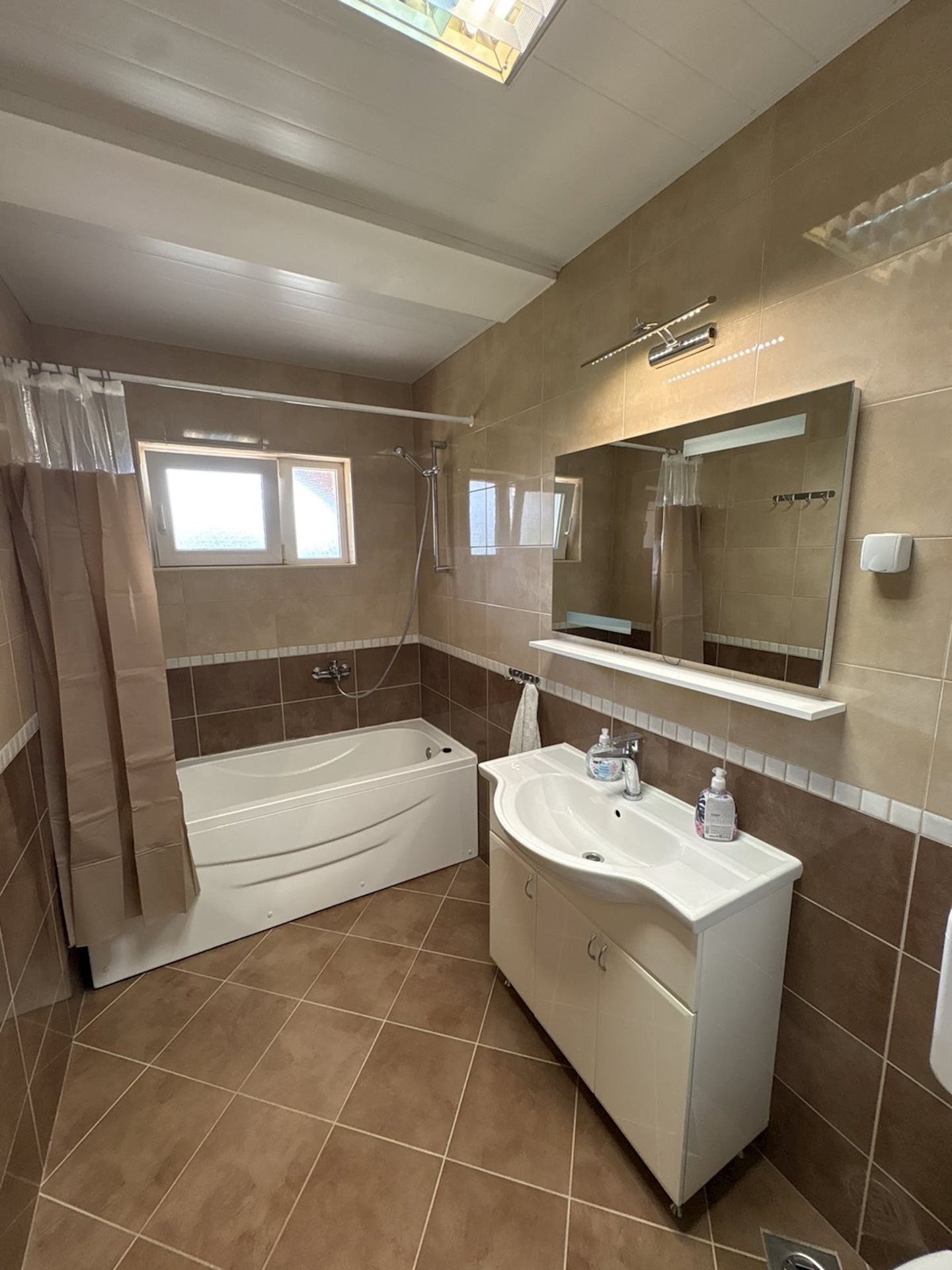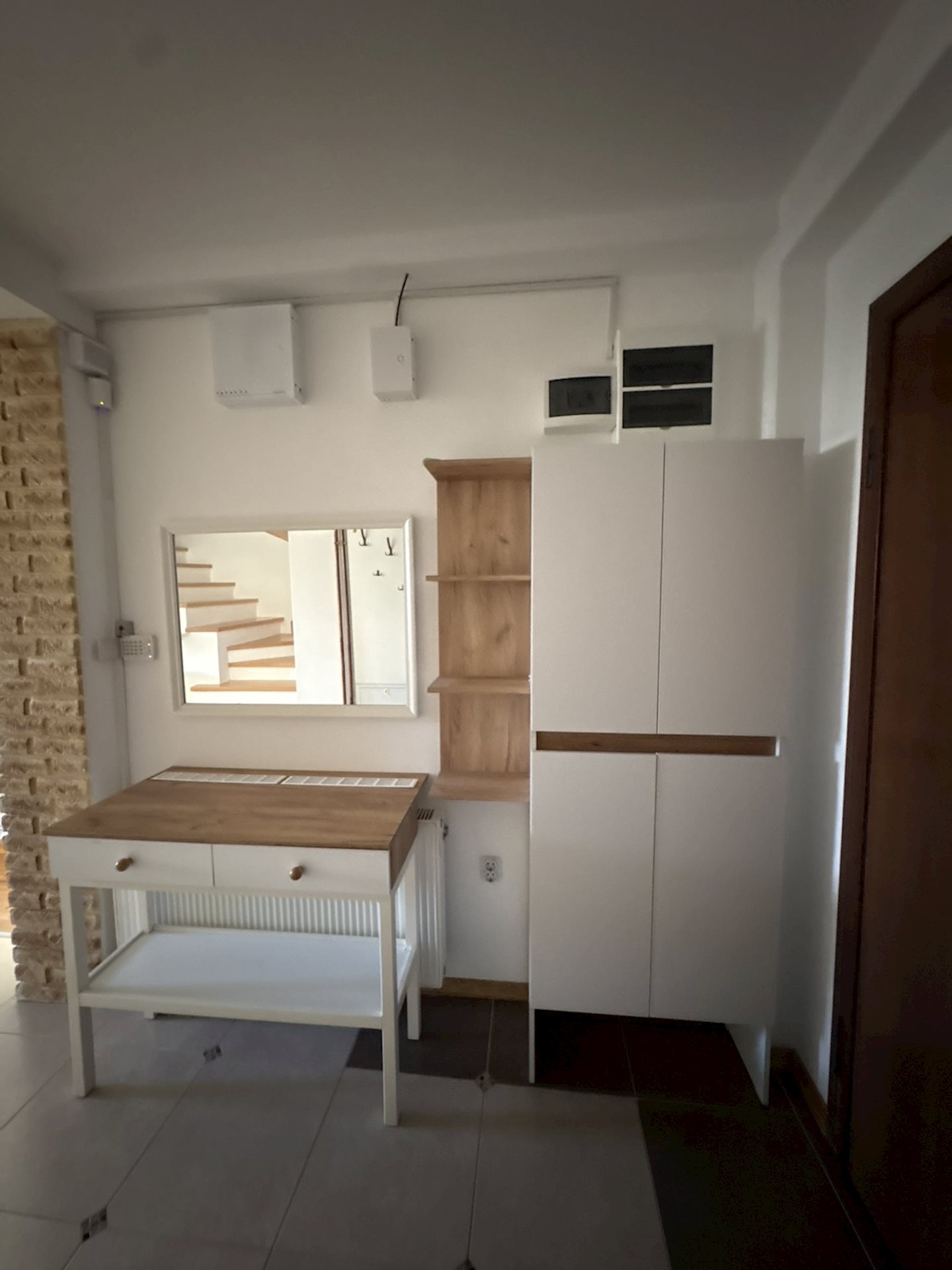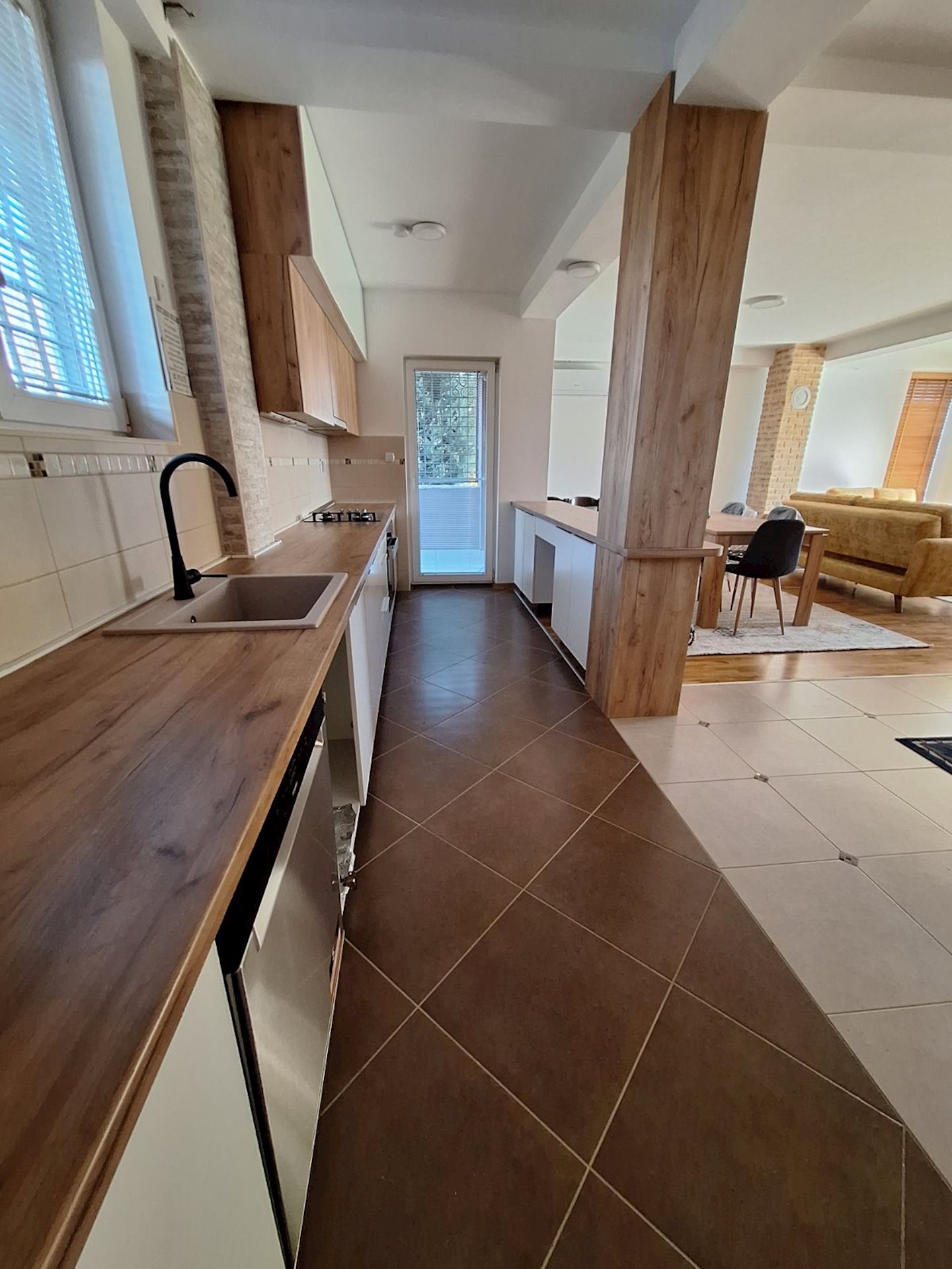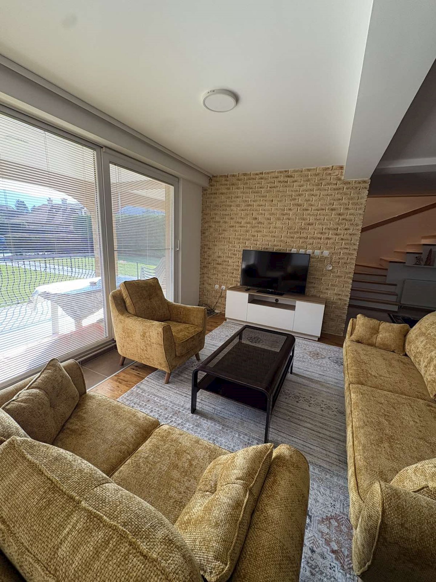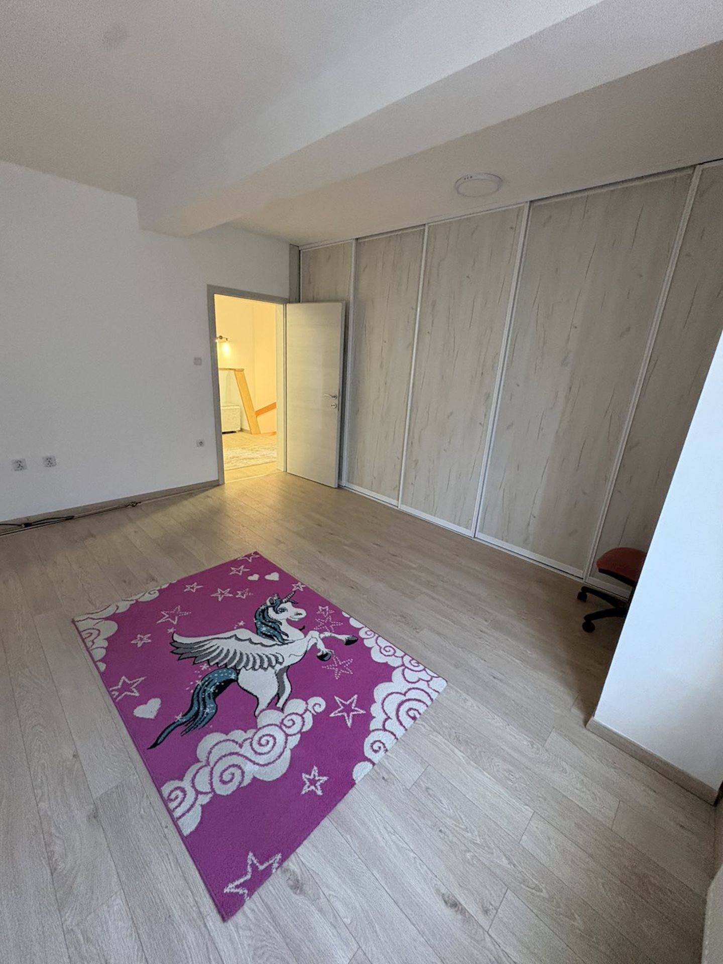 A new house for rent in Bardovci, with a total area of 220m2, plus addition area, on a plot of 500m2. The house is on two levels of 75m2 each and plus addition area of 70m2, as a separate apartment. On the ground floor there is a living room with a new kitchen and one bathroom. On the first floor there are 3 large bedrooms and 2 bathrooms. The additional area consists of a living room with a kitchen and a bathroom. The heating is very economical with Daikin heat pumps and plus inverter air conditioners. There is parking space for 5 vehicles inside the gated yard.