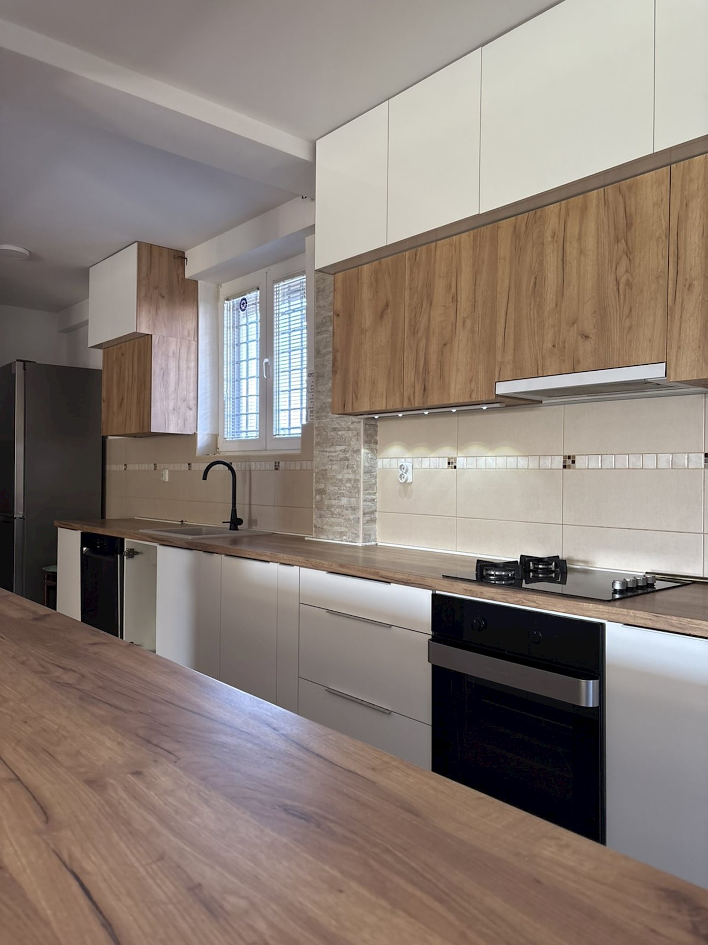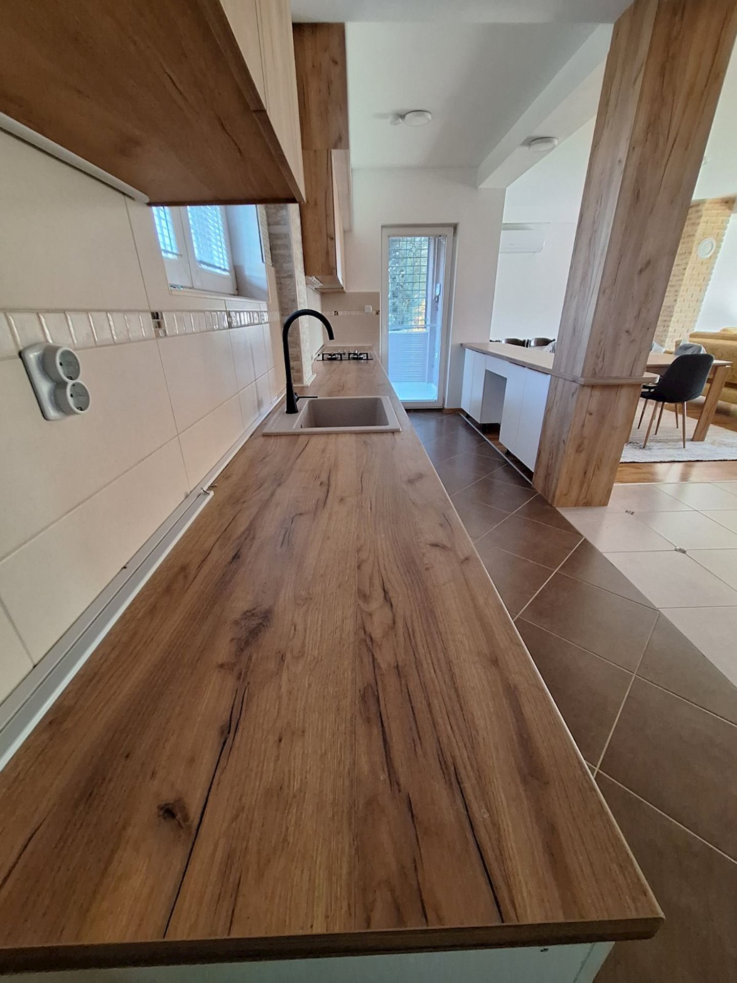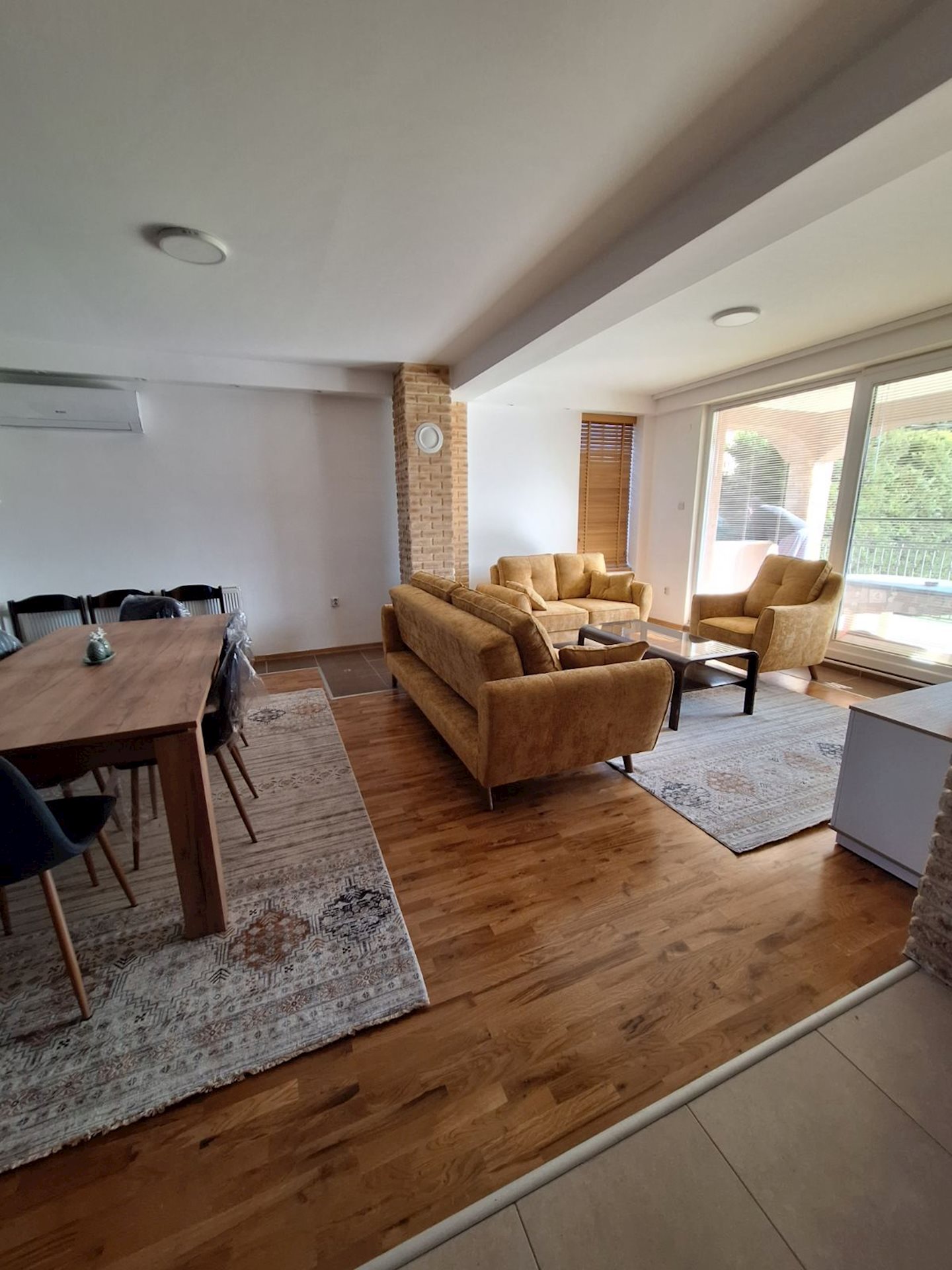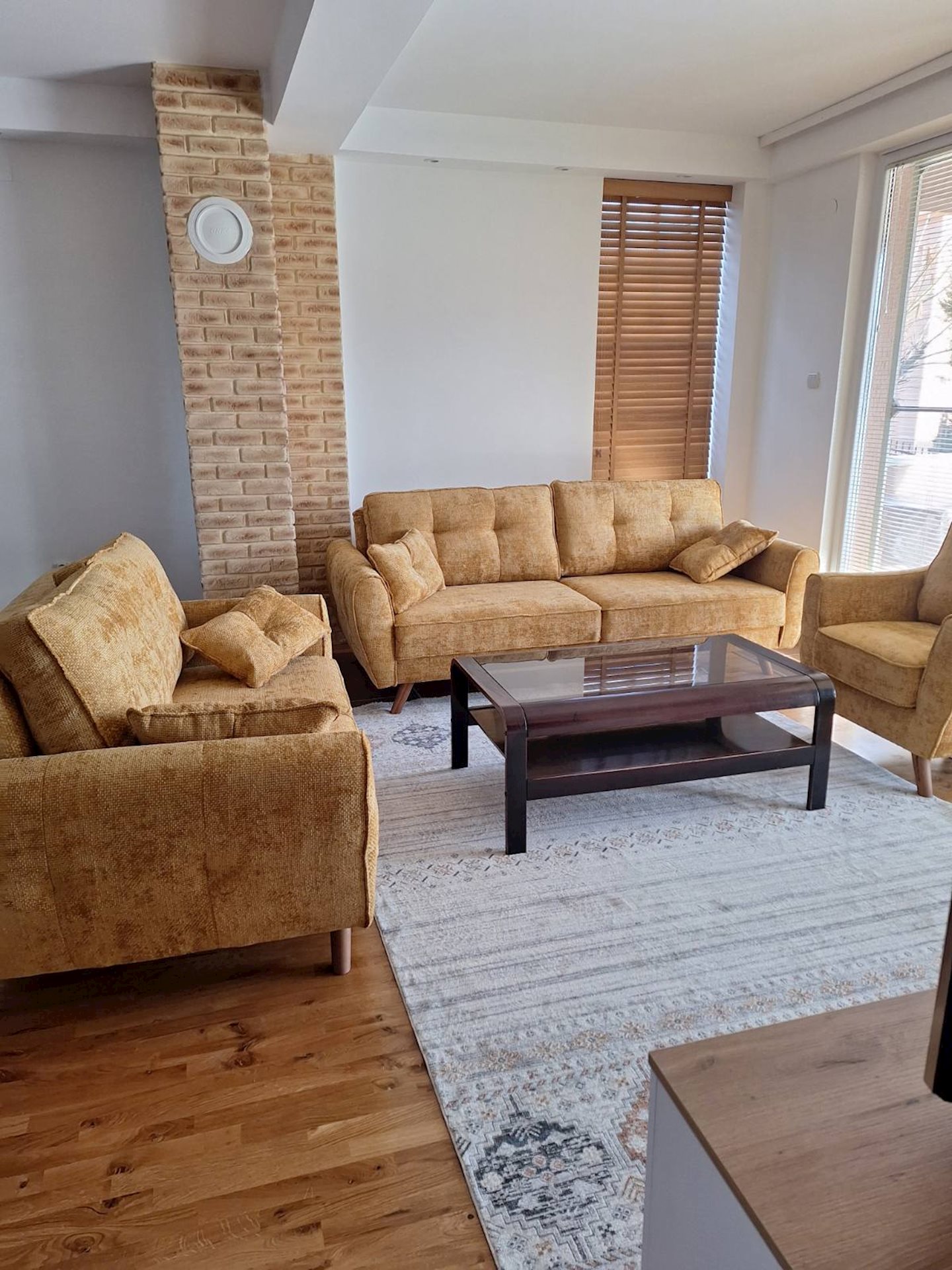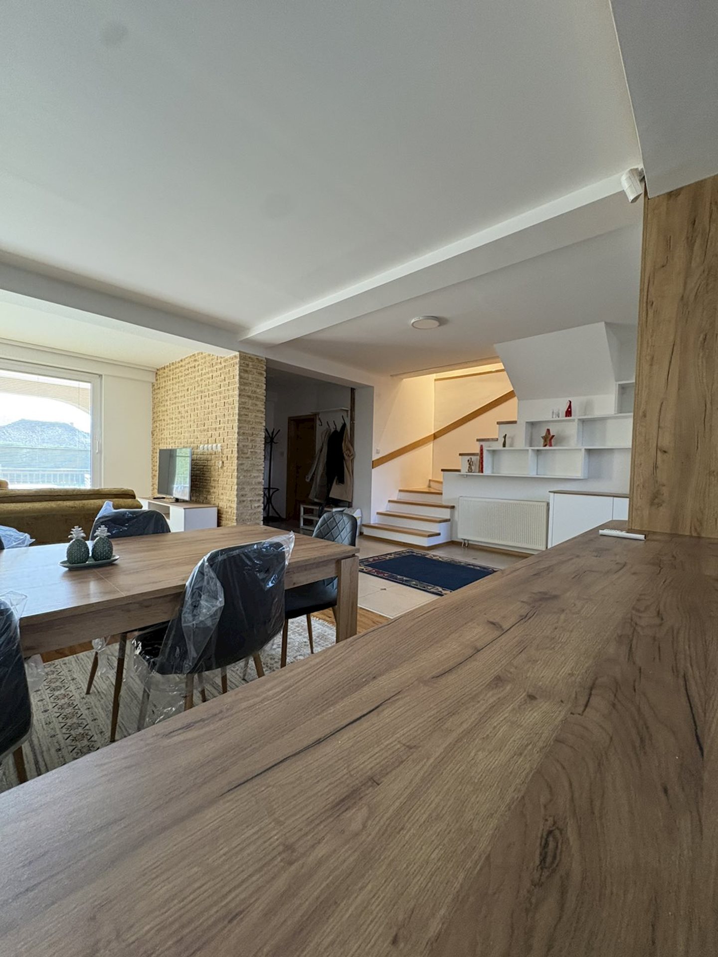 A new house for rent in Bardovci, with a total area of 220m2, plus addition area, on a plot of 500m2. The house is on two levels of 75m2 each and plus addition area of 70m2, as a separate apartment. On the ground floor there is a living room with a new kitchen and one bathroom. On the first floor there are 3 large bedrooms and 2 bathrooms. The additional area consists of a living room with a kitchen and a bathroom. The heating is very economical with Daikin heat pumps and plus inverter air conditioners. There is parking space for 5 vehicles inside the gated yard.