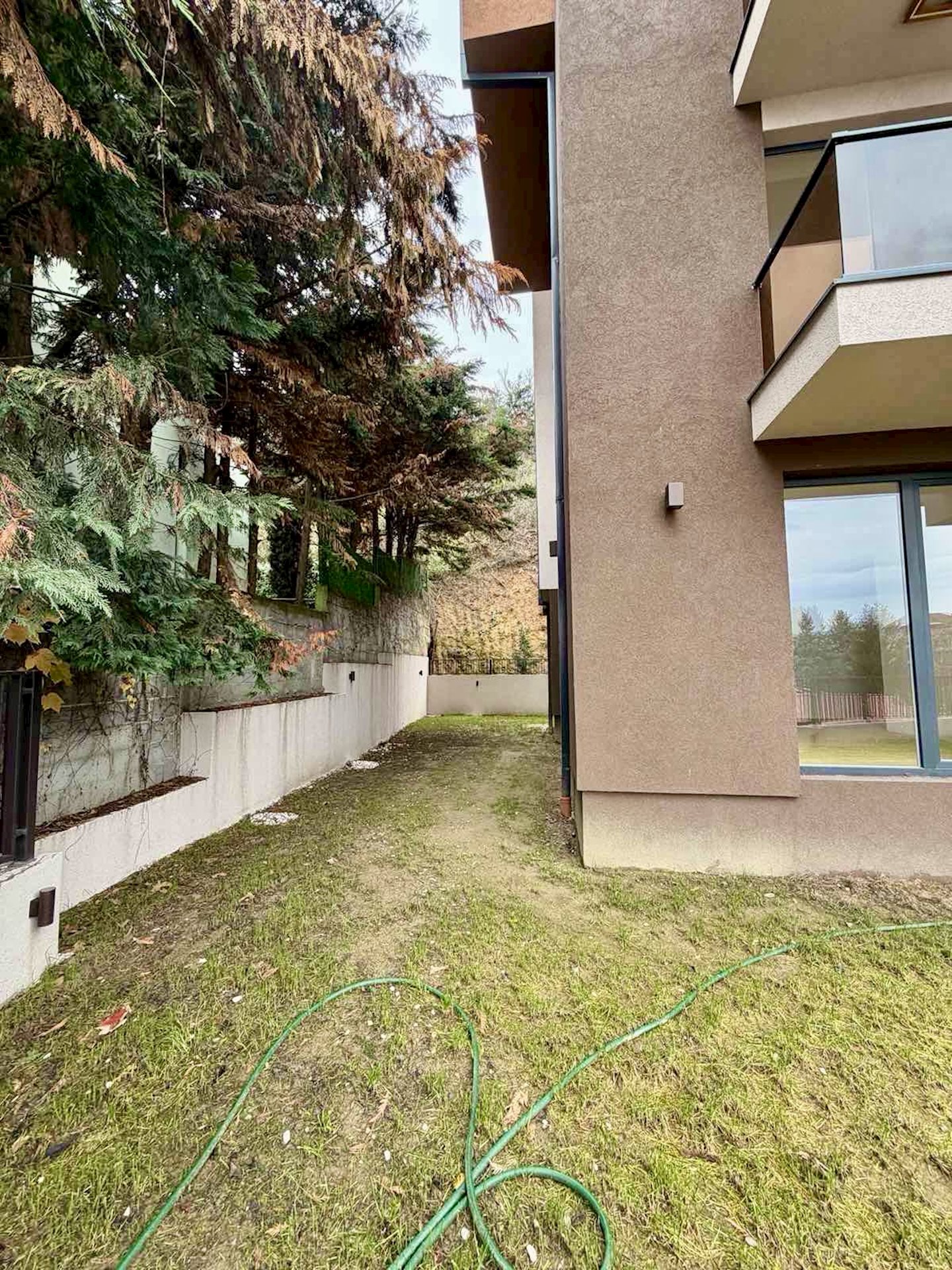 Приземје :108м2 со двор од 243м2 Станот се состои од влезен ходник, дневна соба со кујна и 2 купатила, 1 гостински тоалет и 3 спални соби од кои едната со сопствено купатило. Гаражни места 2 со вкупна квадратура од 69м2.