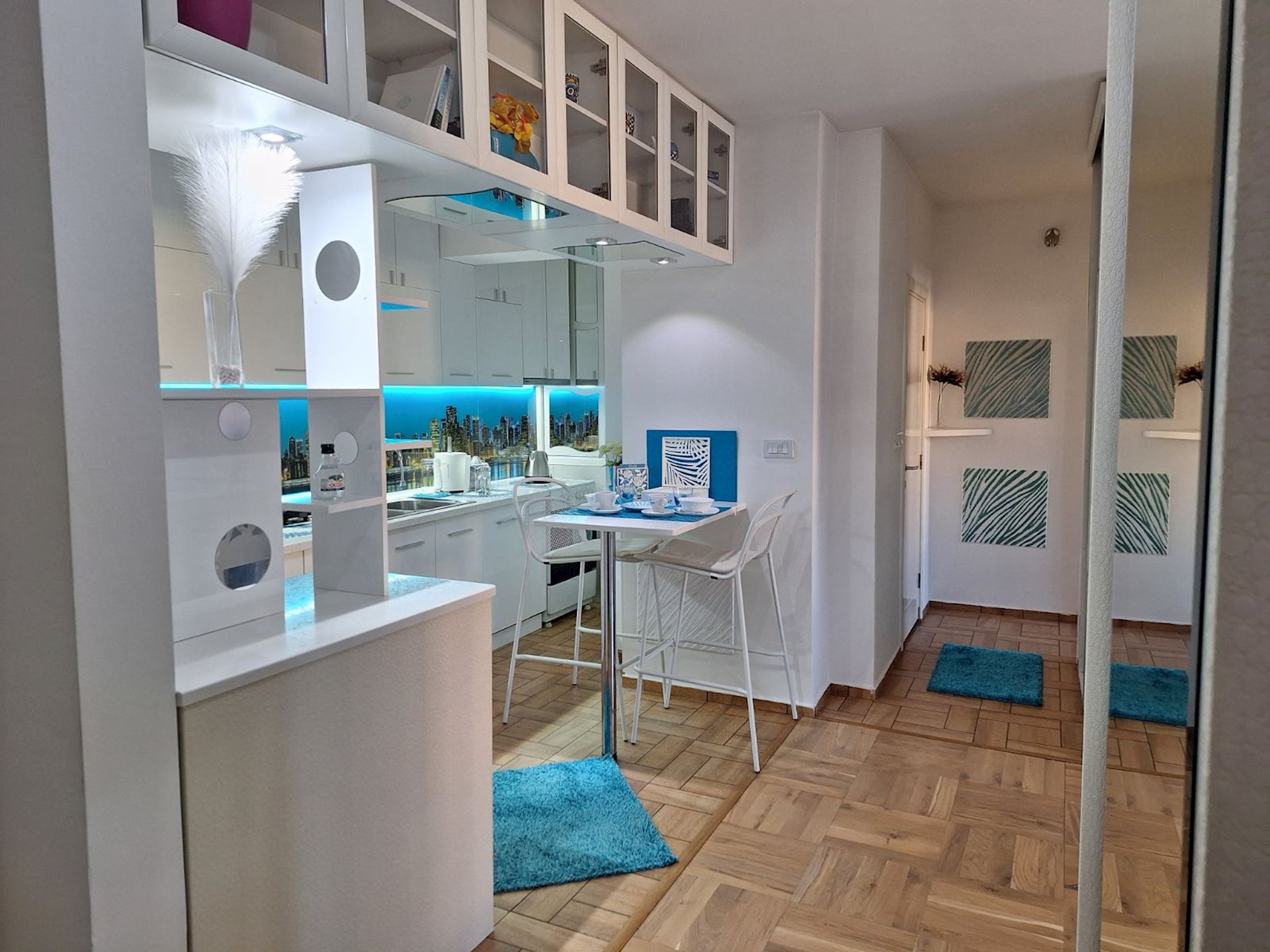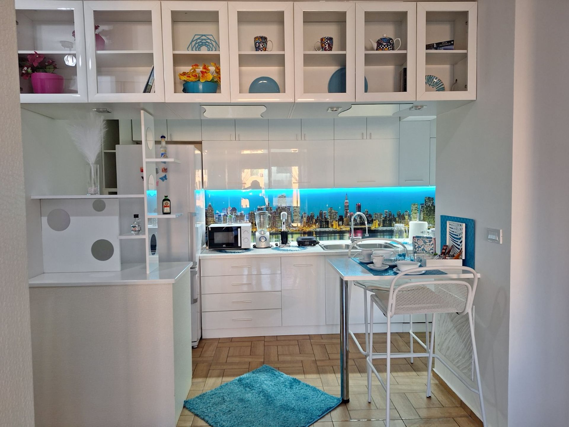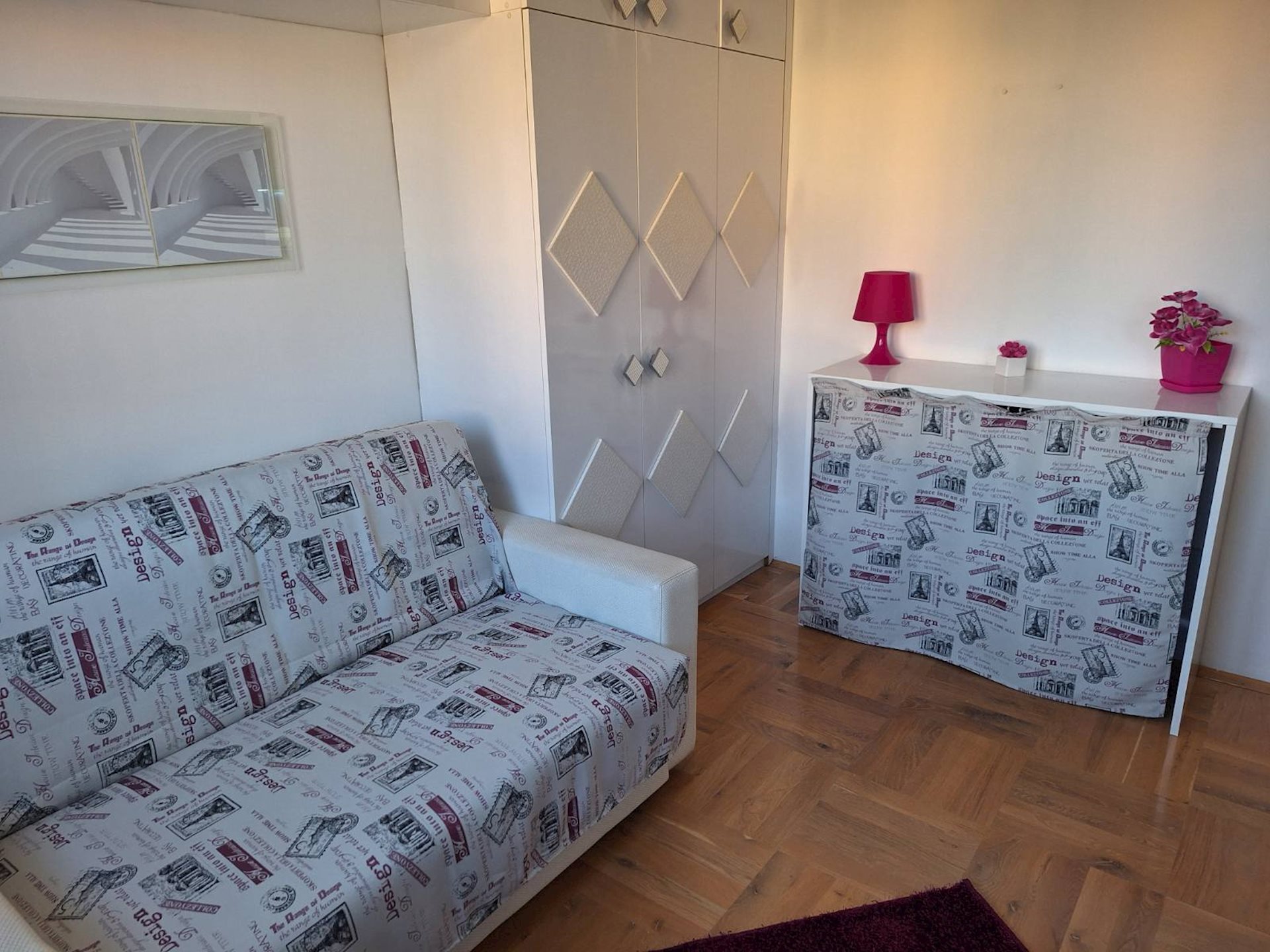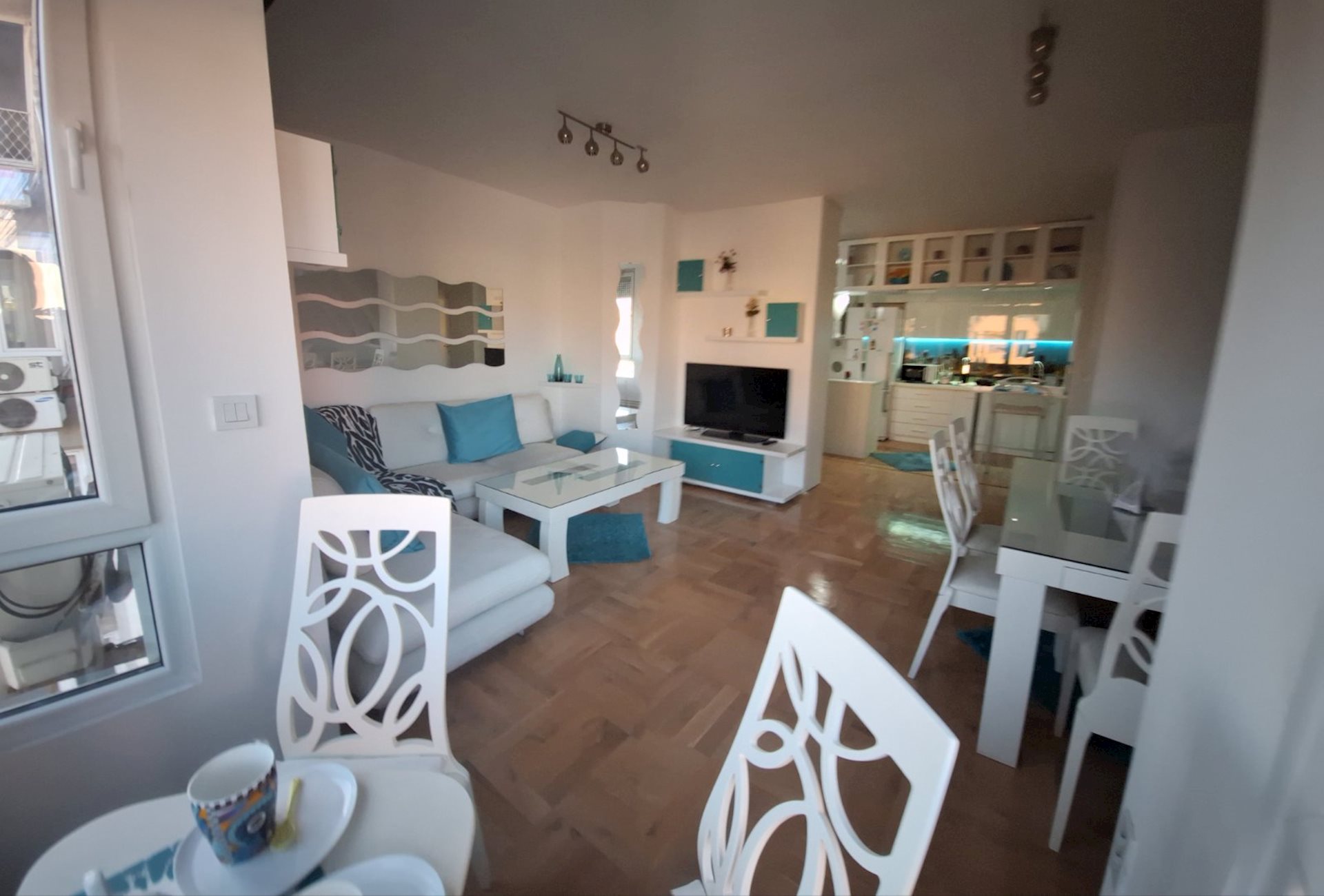 A fully furnished, beautiful 64m2 apartment for rent, in the building above Tinex market and NLB Bank, in the center. The apartment is on the 3rd floor/of 6 floors, in a building with an elevator and city central heating. It consists of a living room, separate kitchen, 2 bedrooms and 2 bathrooms. One outdoor parking space with a card is included with the rent of the apartment, with the possibility of another parking space with a sticker, if needed. The apartment is rented for residential living, but it is also suitable for office work.