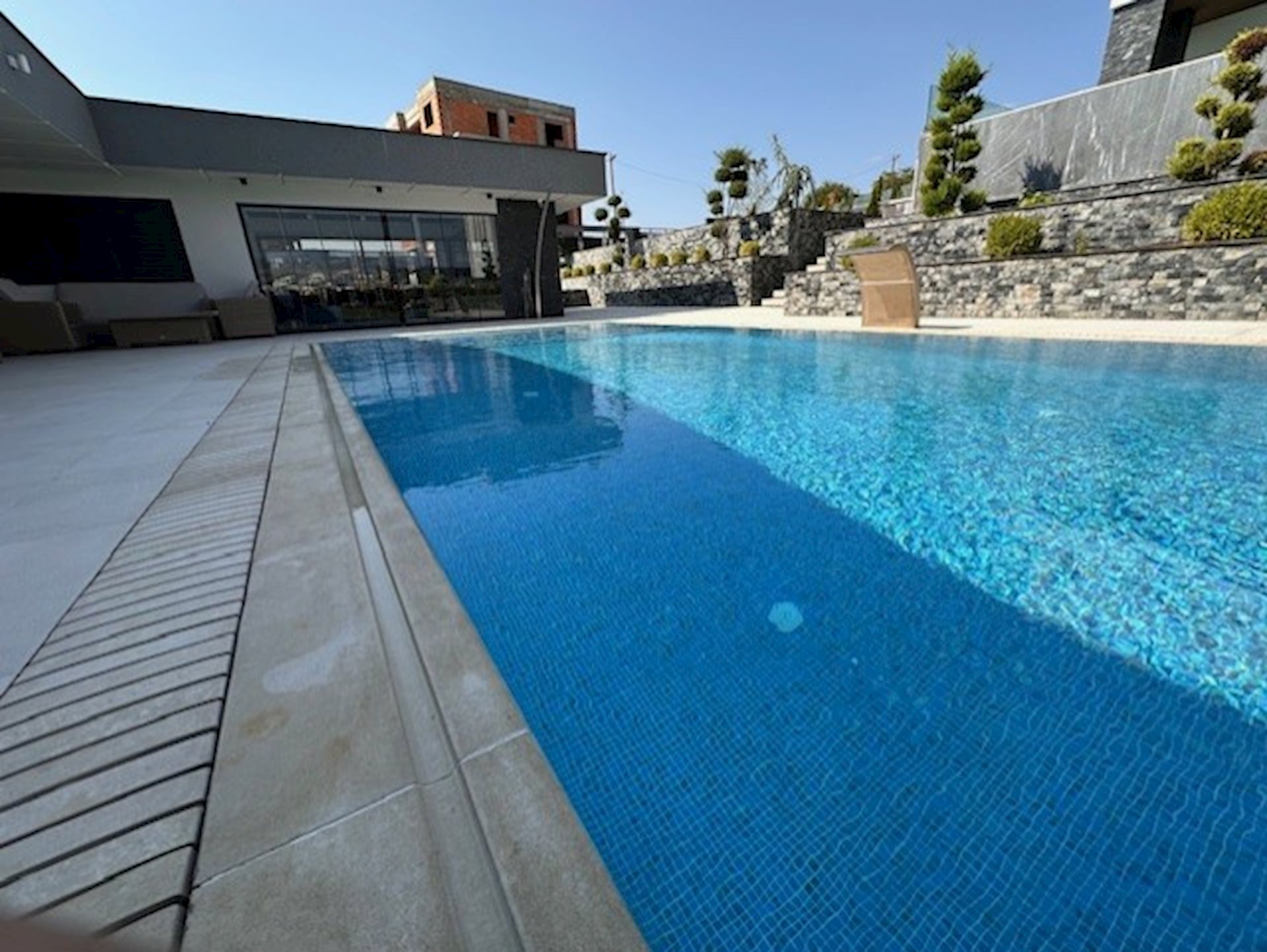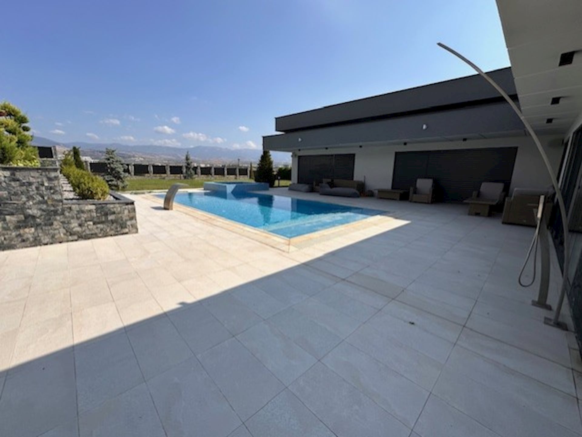Се изнајмува модерно опремена куќа во населба Бардовци со со вкупна површина од 638м2 и уреден двор со површина од 1100м2, со базен.