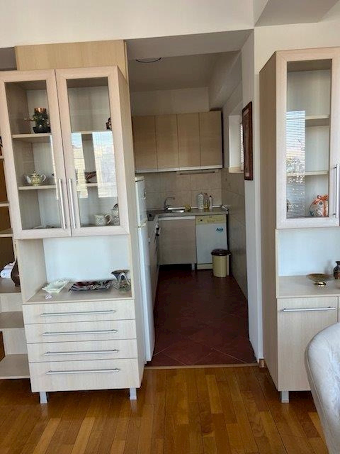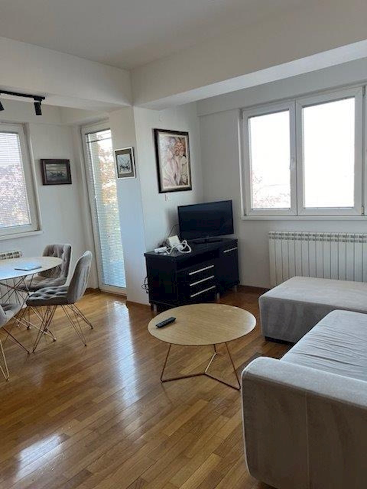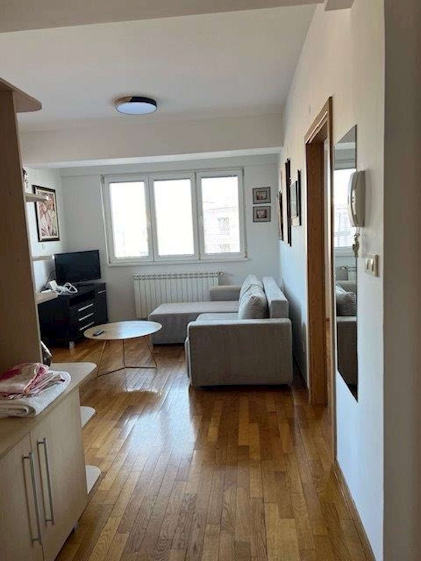 Completely furnished apartment for rent with 45m2, on the 4th floor, in a newer building, on Blvd. Partizanski Odredi, above Taco's Jam, in Debar maalo. The apartment faces the quiet side of the building, it is quite bright, the building has an elevator and central city heating. It consists of a living room room, kitchen, terrace, one bedroom and one bathroom. One car garage parking space in the building on level -1 is included in the monthly rental price.