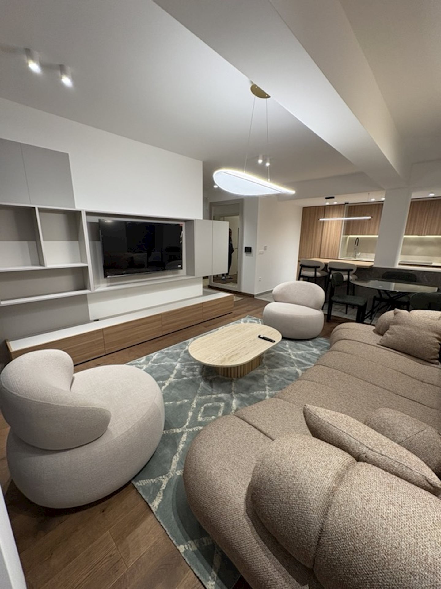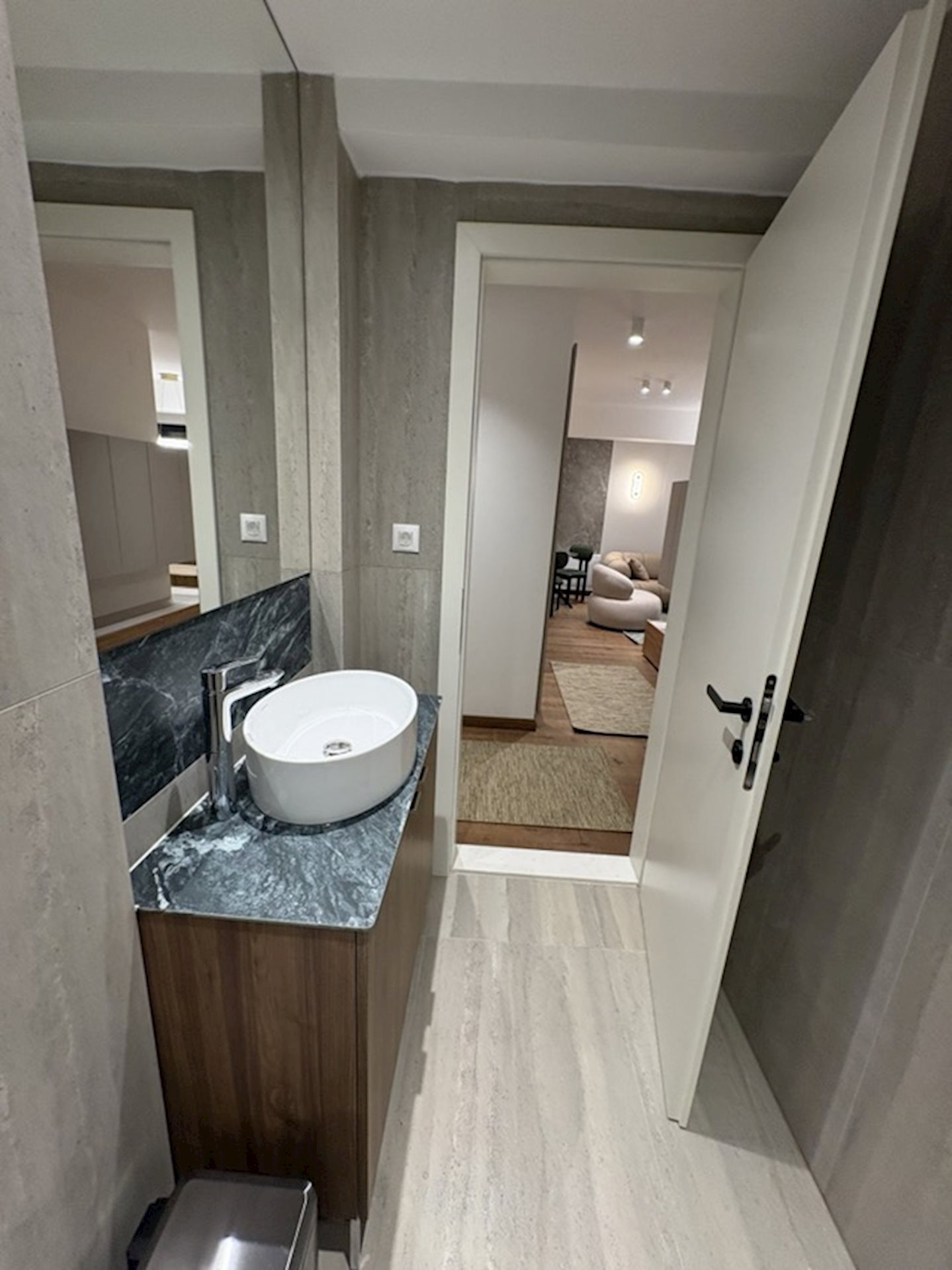 Gorgeous brand new apartment for rent, with 77m2, in a new boutique style building with only 4 apartments, in Crnice. The apartment has never been occupied, it is fully furnished with new stylish furniture and appliances of the highest quality. It consists of an entrance hall, a living room with a beautiful kitchen, master bedroom, children's bedroom with bunk beds, one bathroom and one guest toilet. Equipped with a smart lighting system and smart system for high energy efficiency, a heat pump for heating/cooling and one garage parking space on level -1.