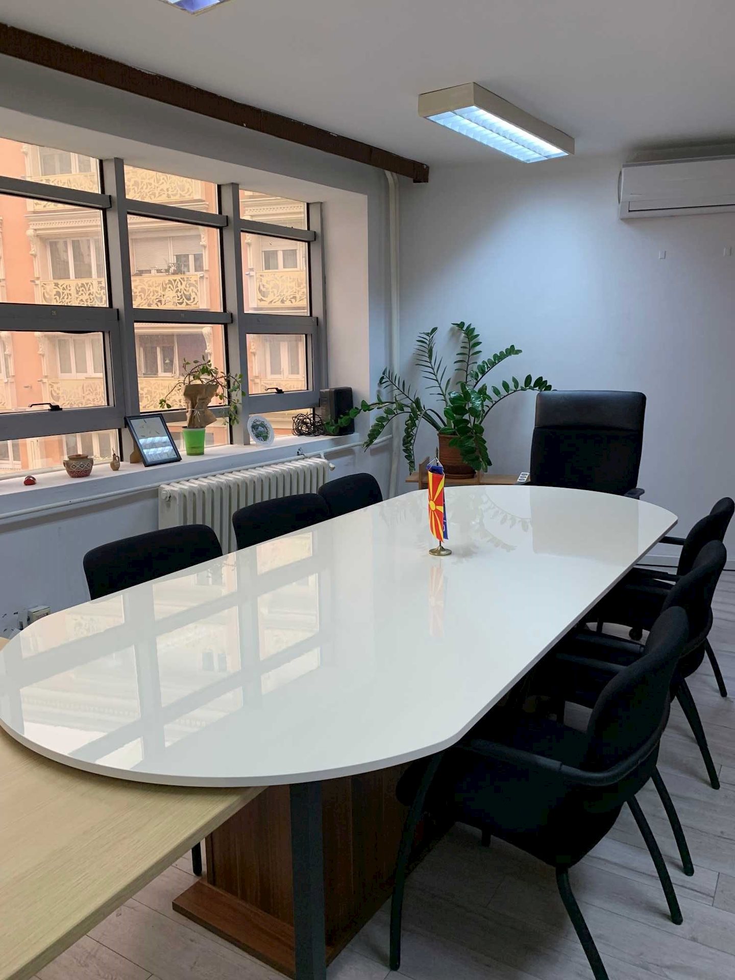 Excellent office-commercial space for rent in the center of Skopje, with area of 278 m2, above "Trend" cafe. The office space is on the 2nd/out of 5 floors, with an elevator. It consists of an entrance hall with 10 offices, conference room overlooking Macedonia Square, a server room with an anti-static floor, equipped kitchenette, 2 male/female toilets, central heating, air conditioners, highest security level and fire alarms.