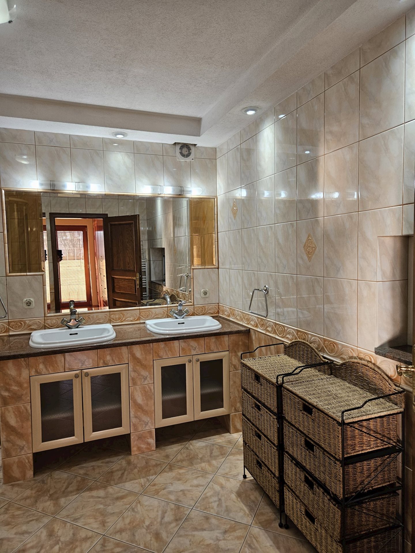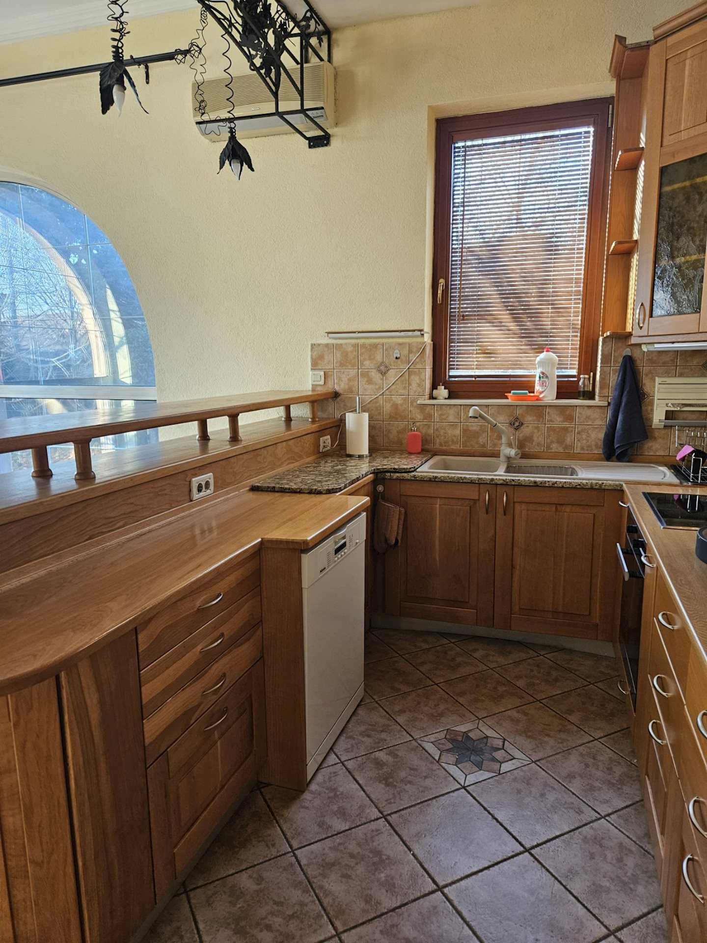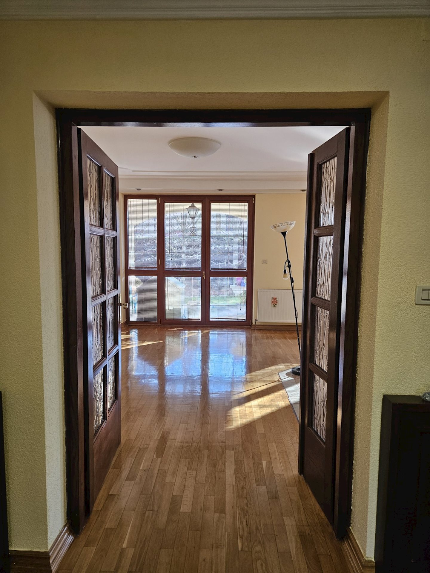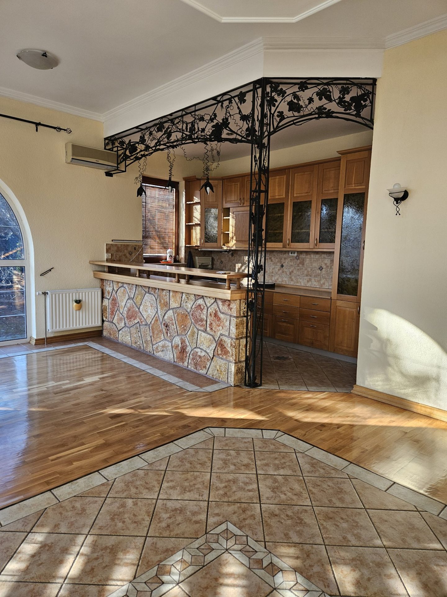 Се продава или издава одлична куќа во близина на црквата во Бардовци. Куќата има бруто внатрешна површуна од 580м2, на убаво уреден плац со квадратура од 1500м2. Целата куќа е разиграна на неколку нивоа и истата се состои од влезен ходник, голем дневен салон со камин, кујна и трпезариски дел со излез во интимен и зелен двор, на катовите погоре има уште 5 спални соби, сите со свои тоалети и балкони а најгоре има пространо подкровје. Во склоп на приземјето има внатрешен базен (7,60м х 3,70м), со сауна и тоалет, кој со големи лизгачки врати се отвора према дворот. Куќата има подрумски простории со една голема соба за фитнес, една техничка соба и гаража со полици за складирање ствари. Има и надворешно покриено паркинг место за две поголеми возила. Дворот е ограден со кованица, хортукултурно е среден и има систем за наводнување, фонтана и газебо со голема маса, фурна со скара и чешма. Куќата има соларни панели со централен бољер за загревање на водата. Загревањето на куќата е решено на два начини: со Buderus систем за греење на нафта и со друг независен, понов и поекономичен систем со топлотни пумпи Daykin. Низ целото приземје, дневниот салон, кујната, трпезарискиот дел како и низ подот каде што е базенот има инсталирано подно греење. Во куќата останува кујната со вградени елементи, како и повеќе вградени плакари низ целата куќа.